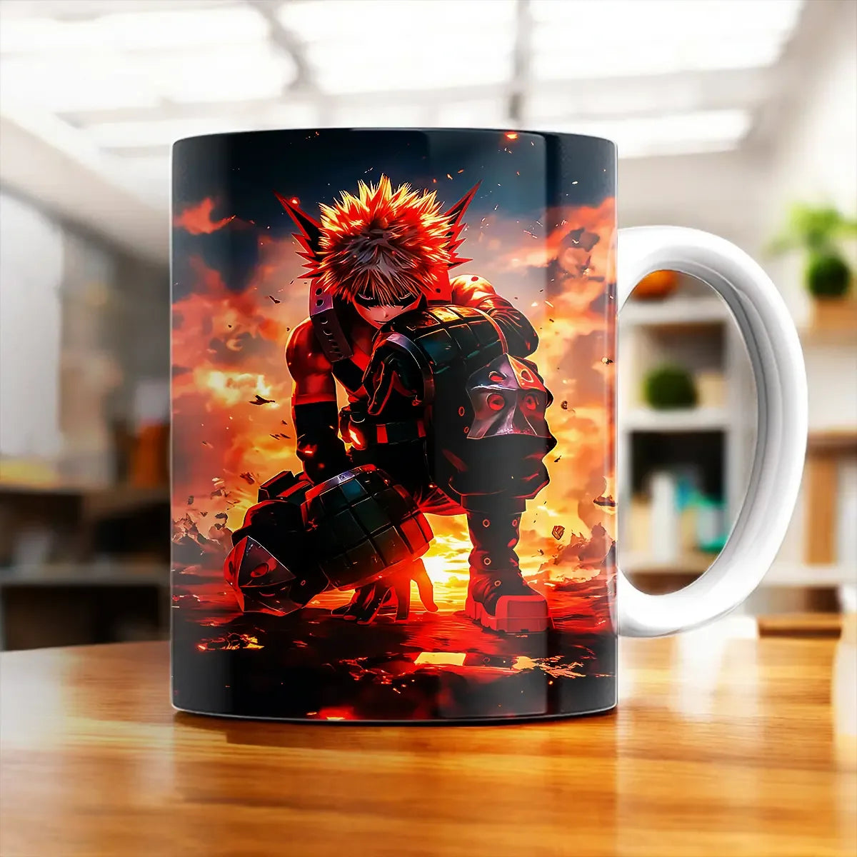 Ce mug illustré en céramique blanche est sublimé par la chaleur sur les deux faces et affiche une illustration dessinée à la main sur tablette graphique. Avec sa contenance de 325 ml il accueille un café corsé, un thé énergisant ou une boisson réconfortante selon votre humeur. Cadeau parfait pour un fan de manga ou pour celui qui aime les objets déco avec du caractère, cette tasse Bakugo ne passe jamais inaperçue.