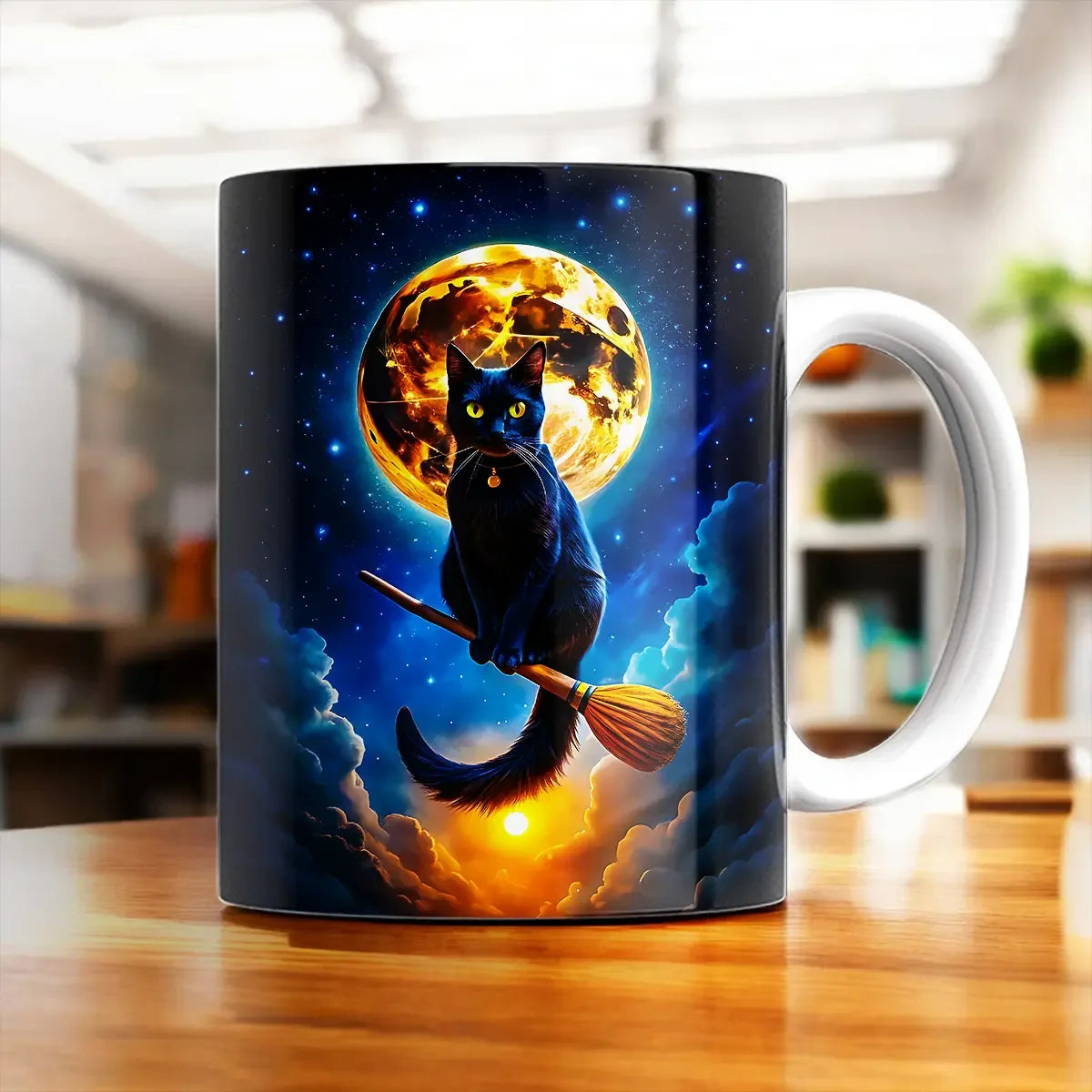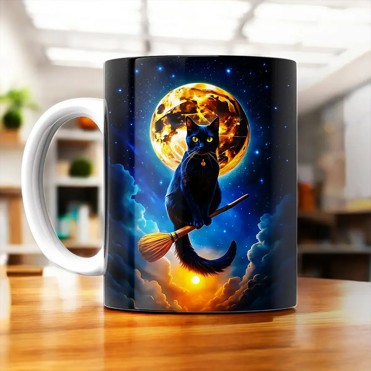 Mug Chat Balais – Envolée féline et sortilèges matinaux