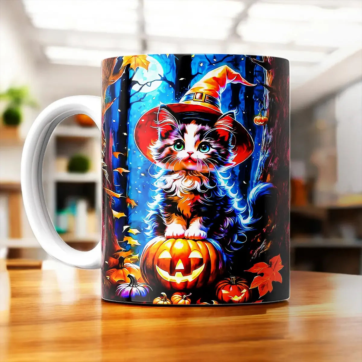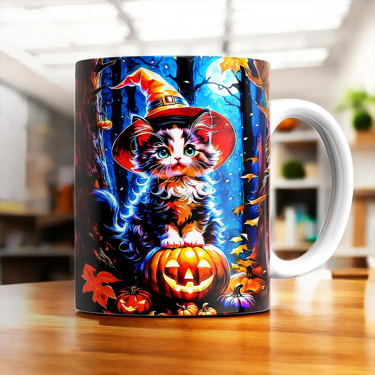 Imaginez la vapeur de votre boisson qui danse autour d’un chat aux yeux perçants, une citrouille ricanante posée à côté. Ce mug Chat Halloween transforme la pause café en petit théâtre nocturne, parfait pour les soirées d’octobre ou les matins où il fait déjà sombre. Avouez, on a tous un côté fan de mystère, et ce mug le révèle avec style. Franchement, il donne envie d’allumer une bougie et de savourer chaque gorgée.