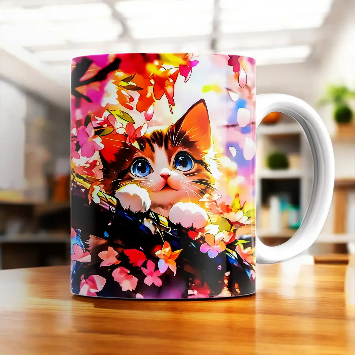 Cette idée cadeau ravira les amoureux des chats et de la nature. Le mug illustré est sublimé par la chaleur sur les deux faces, ce qui permet d'admirer l'illustration depuis n'importe quel côté. Contenance idéale de 325 ml, pratique et poétique, il se glisse facilement dans un colis pour surprendre un proche ou se glisser sous le sapin printanier d'un anniversaire. Offrir ce mug, c'est offrir une petite parenthèse de douceur.