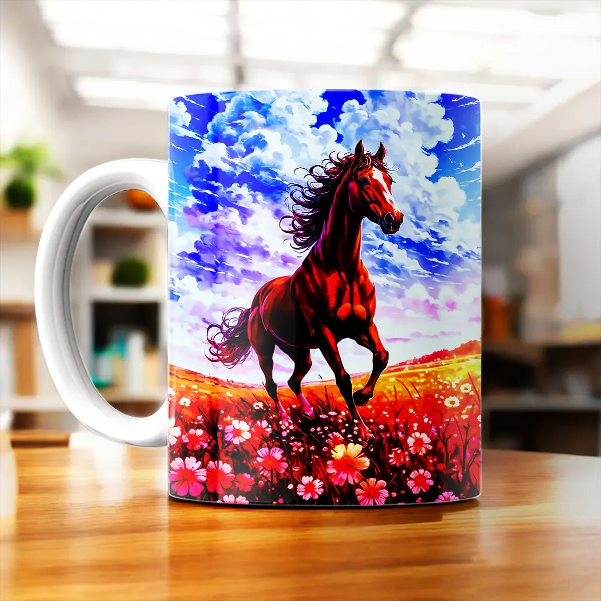 Ce mug illustré est une idée cadeau parfaite pour les amoureux des chevaux, les rêveurs de grands espaces ou simplement pour quelqu'un qui mérite une pause douceur. Offrez une tasse qui raconte une histoire, qui évoque la sérénité et le vent dans la crinière. Franchement, c'est le cadeau qui fait sourire dès l'ouverture du paquet.