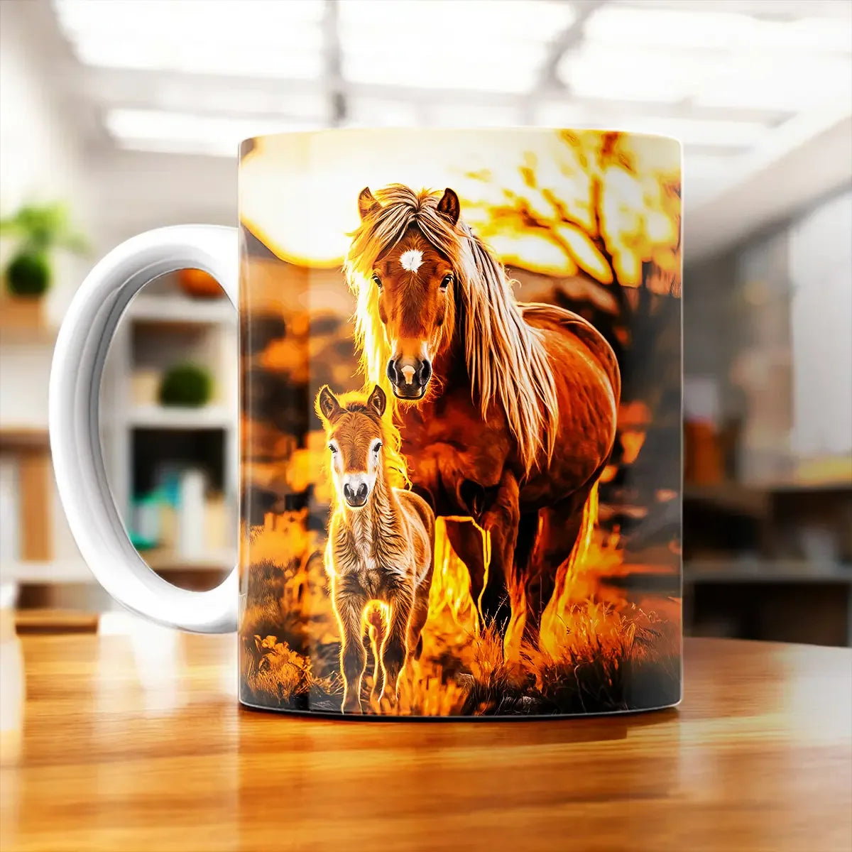 Imaginez votre pause café avec une scène qui fait fondre. Un groupe de chevaux rapprochés, douceur des traits, regard protecteur, et vous qui savourez une gorgée chaude en souriant. Ce mug Cheval Famille transforme chaque instant en petit rituel réconfortant, presque comme un câlin visuel à portée de main. Avouez, on a tous besoin d’un compagnon comme celui‑ci.