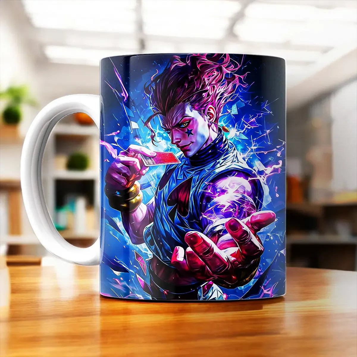 La tasse Hisoka combine design et tempérament. L'illustration dessinée à la main sur tablette graphique capture les détails du personnage, ses cartes et son aura. Avec une contenance de 325 ml, elle conviendra à votre espresso long, votre café filtre ou votre infusion préférée. On est d'accord, c'est la tasse parfaite pour affirmer son style fandom sans faire dans la demi-mesure.