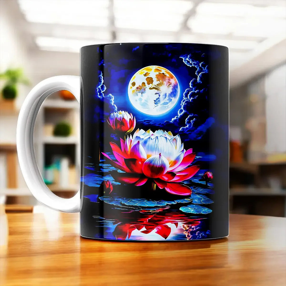 Inspirez... expirez... et savourez un instant de calme. Le Mug Lotus pose la délicatesse d'une fleur qui flotte sur l'eau au creux de vos mains, parfait pour vos pauses café ou thé. Imaginez le matin, une tasse chaude, le visuel apaisant du lotus et cette petite bulle de tranquillité avant la journée. Avouez, on est d’accord, il a ce je-ne-sais-quoi qui transforme une boisson en rituel.