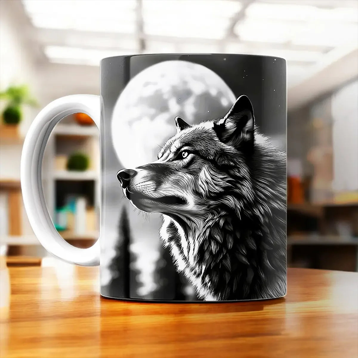 Mug Loup Monochrome – L'élégance sauvage en noir et blanc
