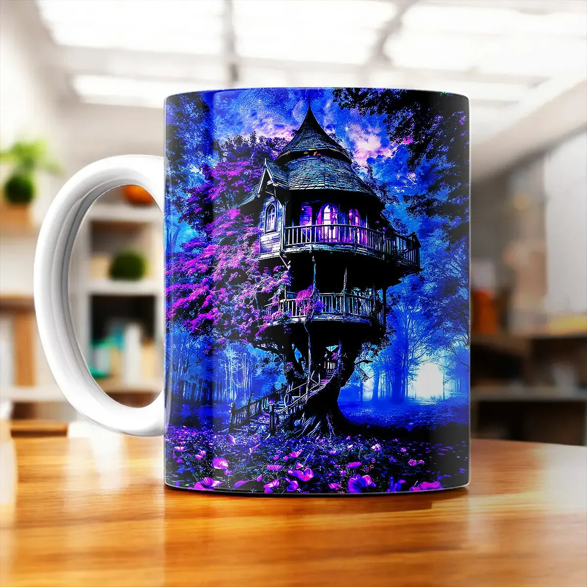 La tasse affiche un design dessiné à la main sur tablette graphique, où chaque détail raconte une histoire. Le visuel atmosphérique s'étale des deux côtés grâce à une sublimation thermique soignée. Elle devient vite le mug qu'on ne prête pas, celui qui suit partout, celui qui rend chaque pause café ou infusion un peu plus magique.