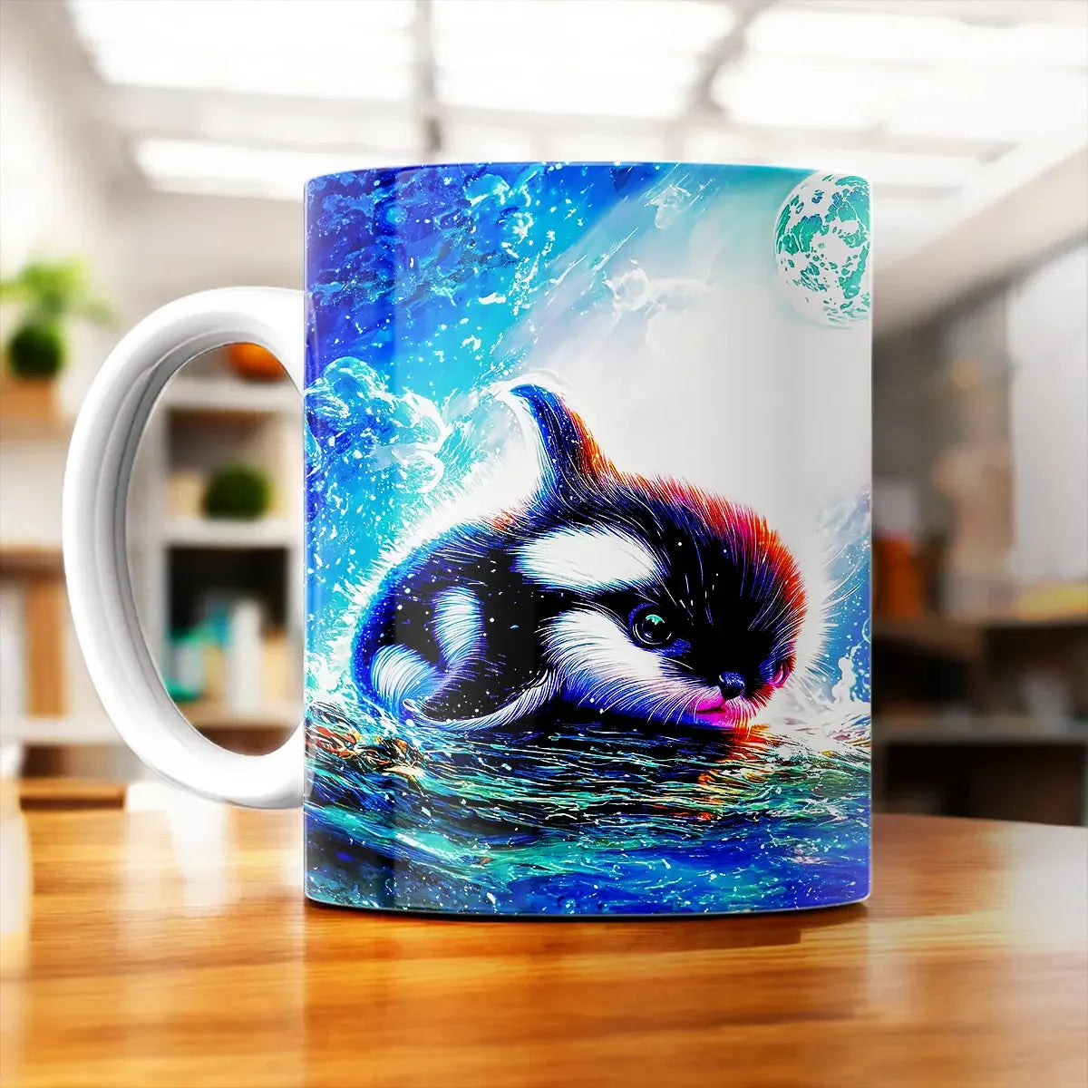 Chaque mug raconte une petite histoire, celle d'un bébé orque malicieux capturé dans un visuel tendre et sincère. C'est plus qu'un simple objet déco, c'est un accessoire du quotidien qui apporte une pause douceur, un sourire au réveil et une petite dose d'émerveillement. Idée cadeau parfaite, objet à collectionner ou tasse fétiche, il se prête à tous les instants. On est d'accord, vous allez le garder pour vous.
