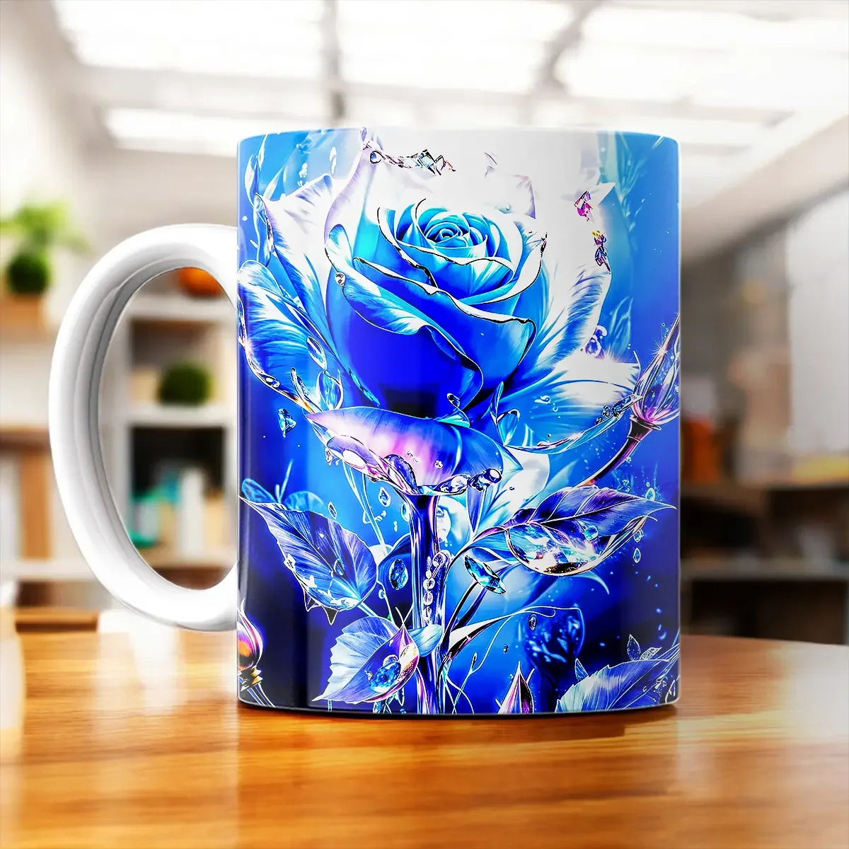 Cette tasse au design travaillé met en scène une rose bleue dessinée à la main sur tablette graphique. Le visuel, imprimé par sublimation, habille les deux faces pour que la poésie vous accompagne quel que soit le côté que vous tenez. Idéale pour vos cafés, thés et chocolats chauds, elle devient vite le mug qu’on garde jalousement, celui qu’on ne prête pas toujours.