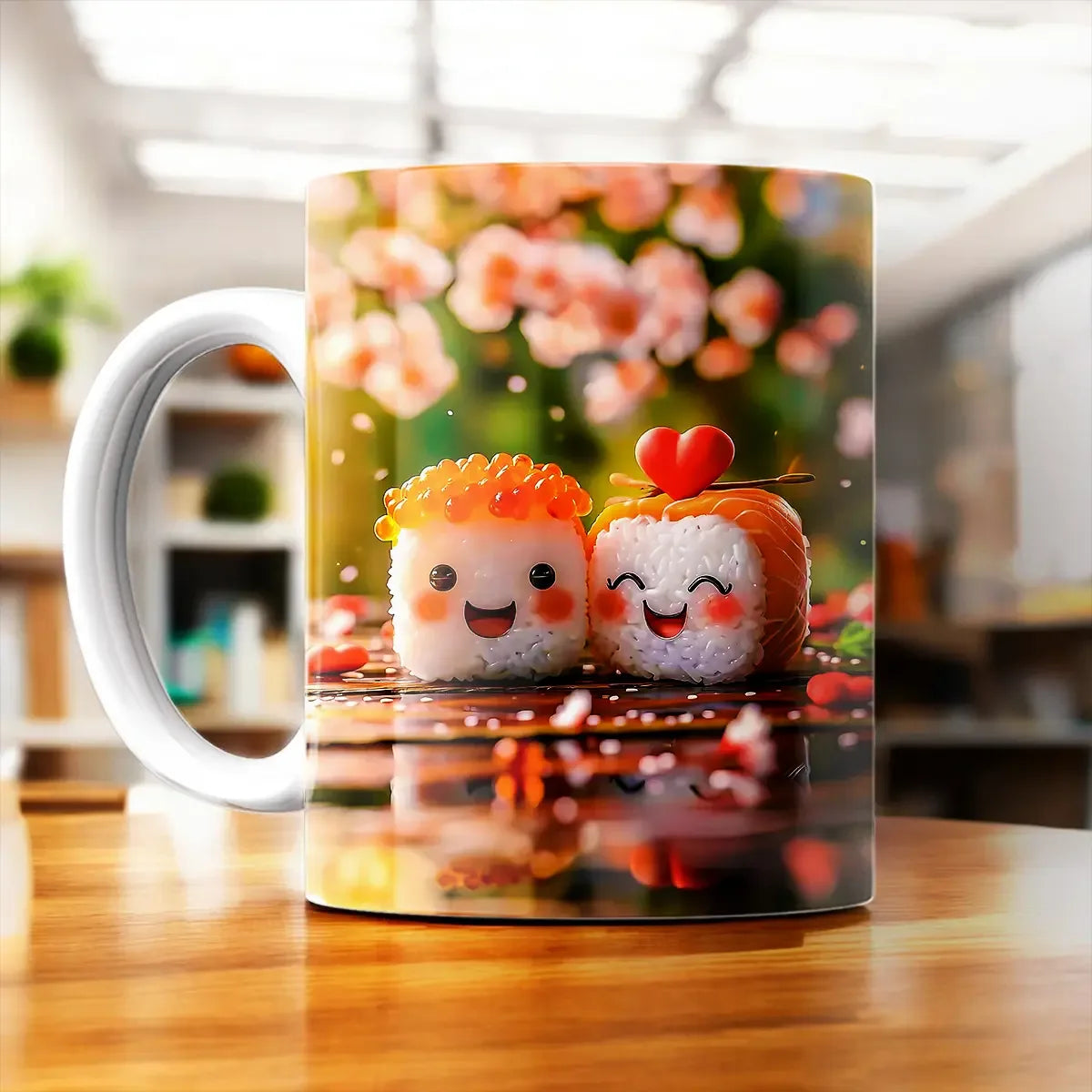 Ce mug illustré est une idée cadeau parfaite pour les amateurs de kawaii, les fans de cuisine japonaise détournée, ou simplement pour ceux qui aiment les objets déco drôles et affectueux. Offrez cette tasse pour un anniversaire, une crémaillère ou juste pour faire plaisir sans raison: elle fait toujours son effet et déclenche des rires complices.