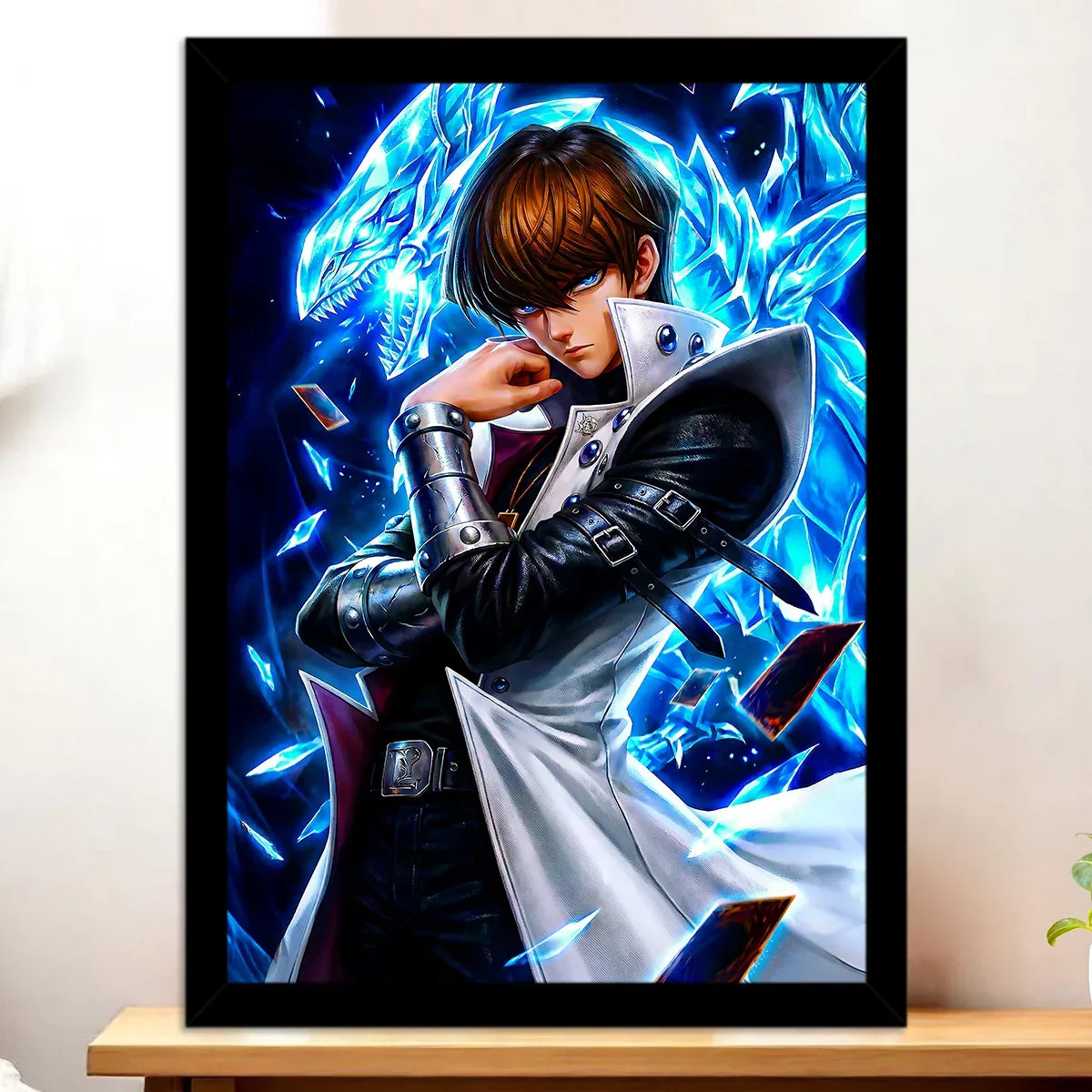 Pour un rendu prêt à poser digne d'un bureau de la KaibaCorp, le cadre est proposé avec un encadrement plastique en noir moderne ou blanc épuré. Les petits formats sont protégés par une vitre en verre, tandis que le 30×40 bénéficie d'un plexiglas léger et résistant. Le cadre transforme l'illustration en une véritable pièce de collection, protégeant votre duelliste favori de la poussière et du temps.