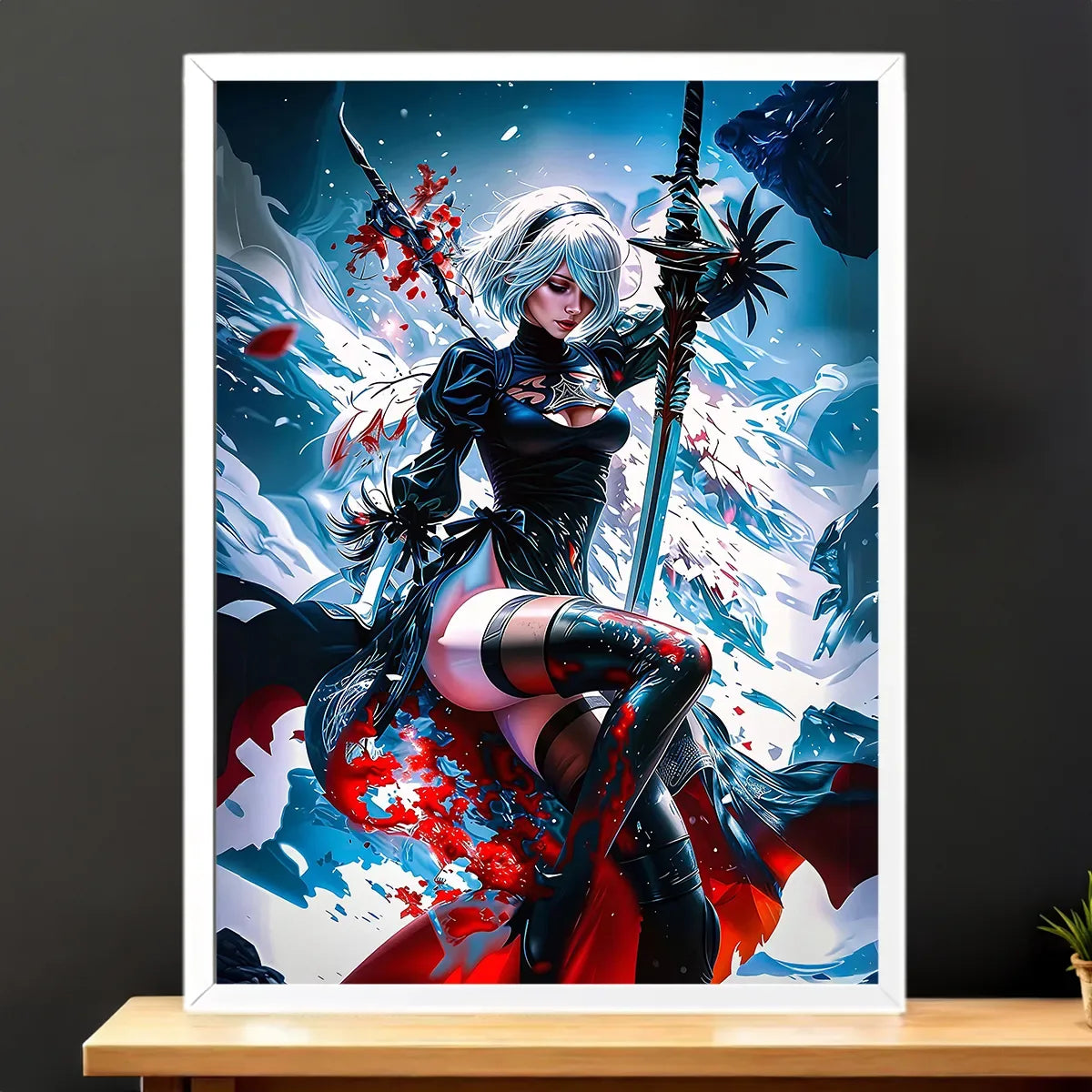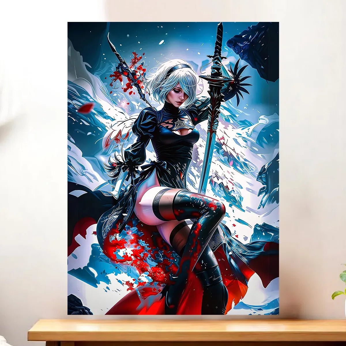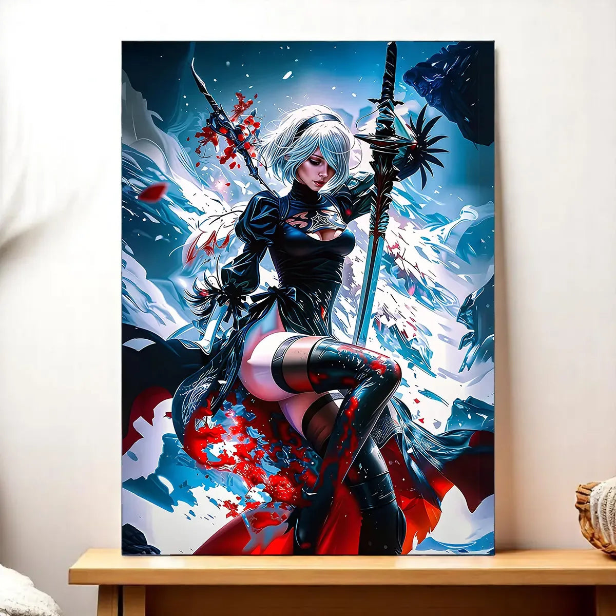 Un visuel poétique, une présence magnétique, et la beauté tragique de 2B qui s’invite chez vous.