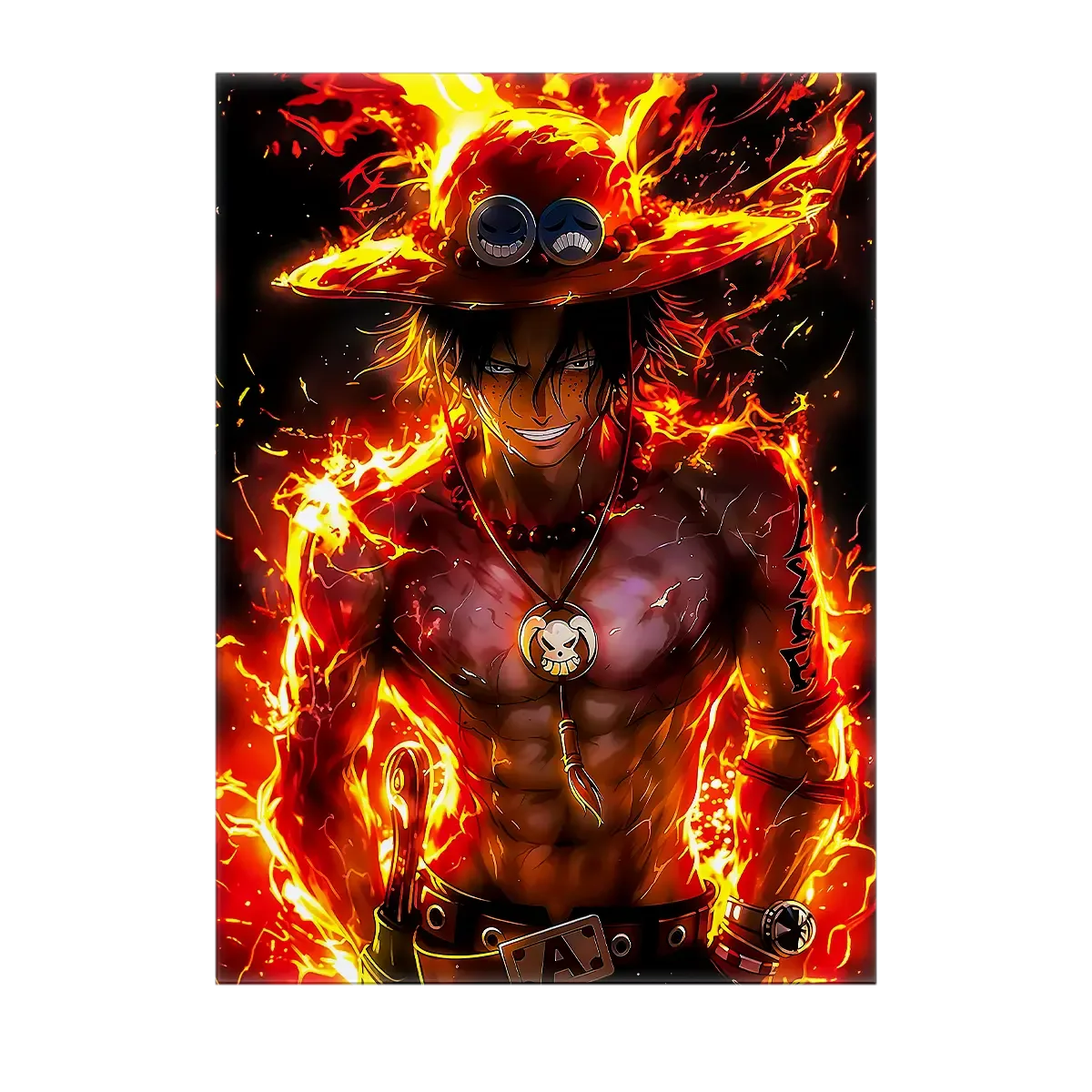 L’affiche Ace reprend chaque détail de l’œuvre imprimée en HD sur papier photo 200g. Disponible en plusieurs tailles, c’est la version modulable parfaite pour encadrer, coller ou superposer dans une galerie murale. La brillance du papier restitue les lueurs du feu et les contrastes du portrait d’Ace avec précision.