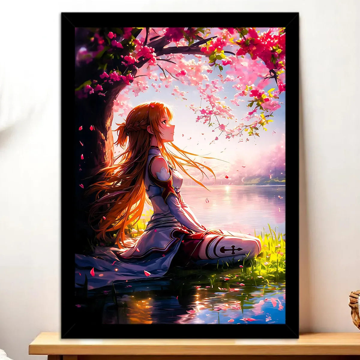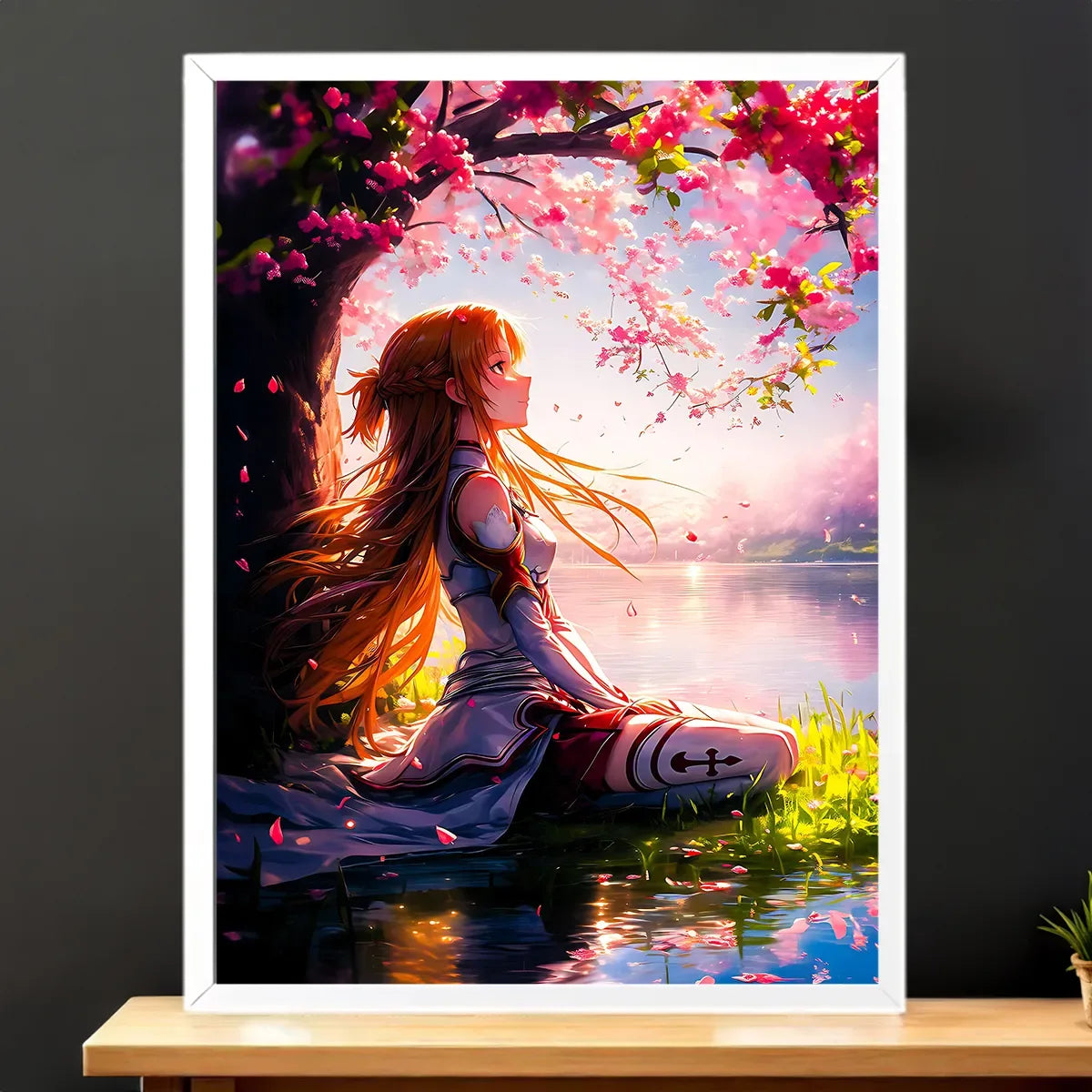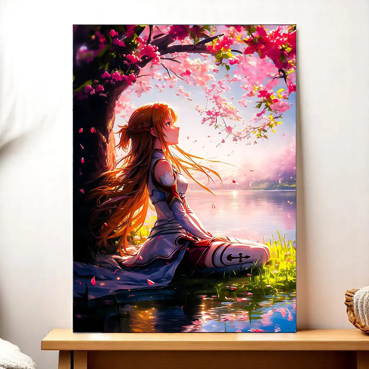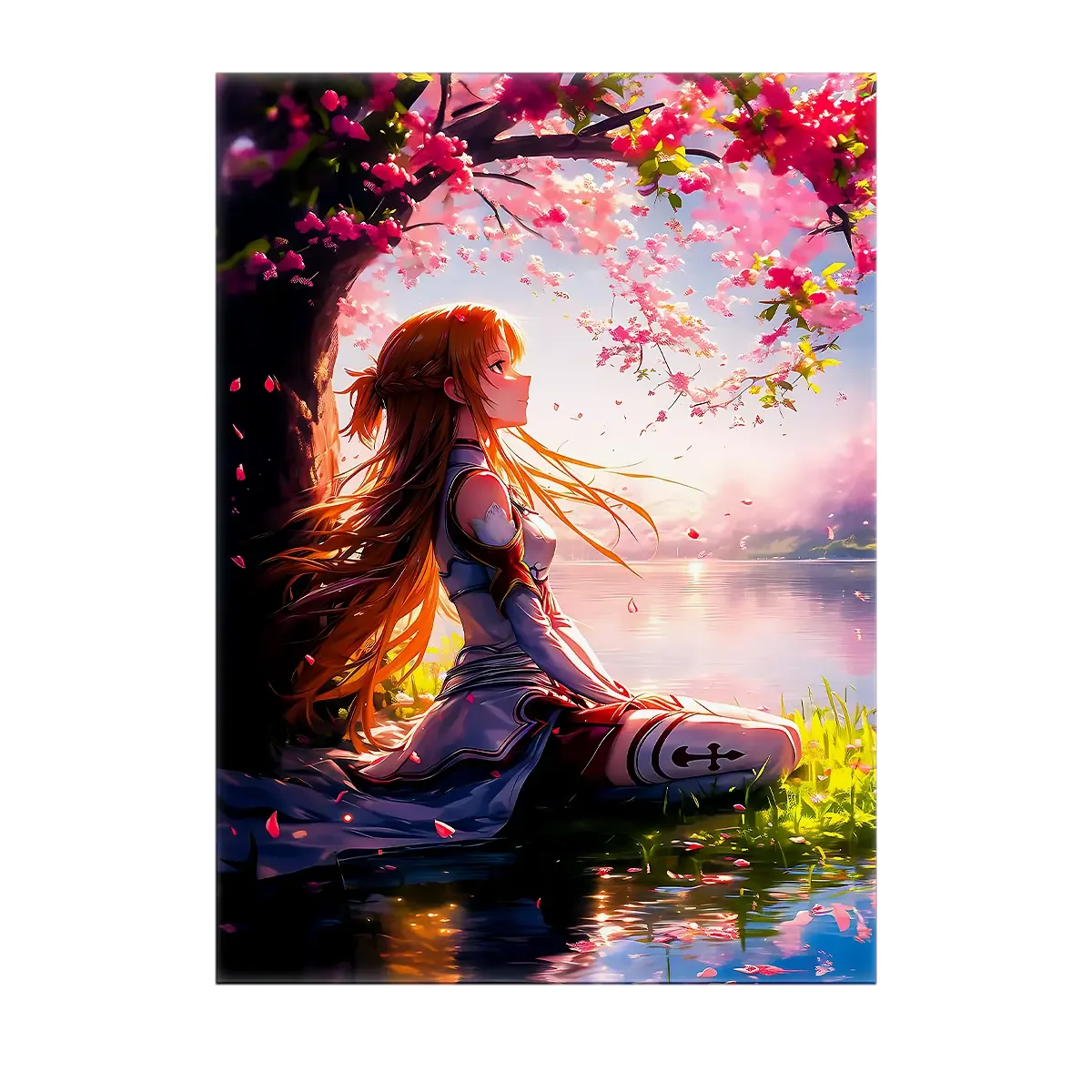 Le tableau est proposé en toile tendue sur châssis bois certifié FSC au format 21×29 cm. La texture du textile capte la lumière, les contrastes gagnent en profondeur, et la silhouette d'Asuna semble presque bouger sous vos yeux. Un rendu artistique et durable qui s'accroche sans effort et habille la pièce d'une présence subtile mais affirmée.