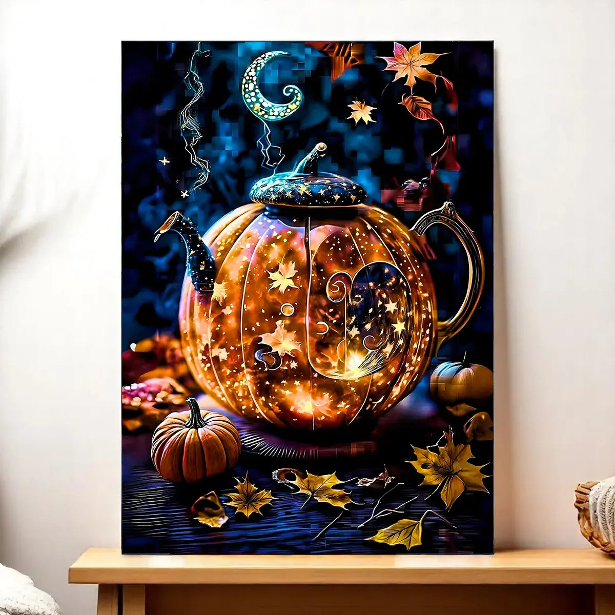 Tableau Automne – Théière Citrouille & Ambiance Cosy