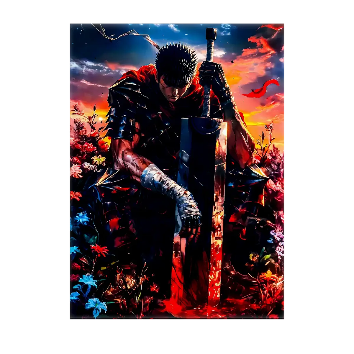 Chaque création est authentique et réalisée sans IA, pensée pour restituer l’univers brut de Berserk. Le rendu premium met en valeur les textures, la lumière sur la lame, le grain de la toile ou la finesse du papier photo. On est d’accord, Guts mérite mieux qu’une simple image, il mérite une présence. Que vous choisissiez tableau, affiche, poster ou cadre, cette œuvre transforme une pièce en sanctuaire visuel.