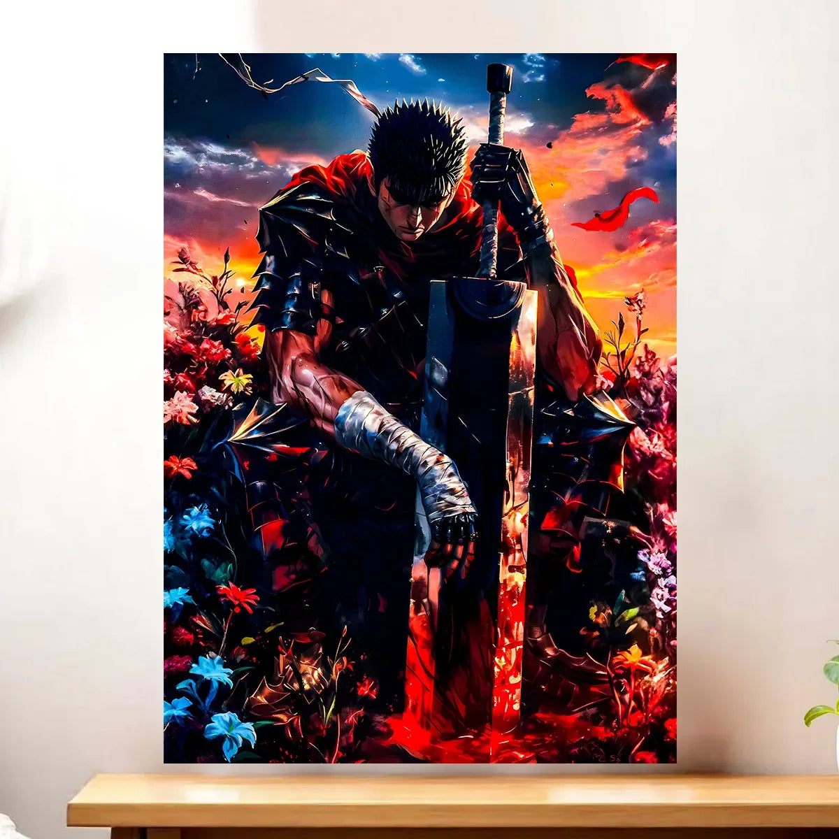 Le poster c’est la version cinéma de l’illustration. Guts y apparaît comme une icône tragique, entre force et destin brisé. Chaque tirage restitue la profondeur des ombres et la texture crue de l’univers de Kentaro Miura. Idéal pour un mur dédié aux plus grandes œuvres.