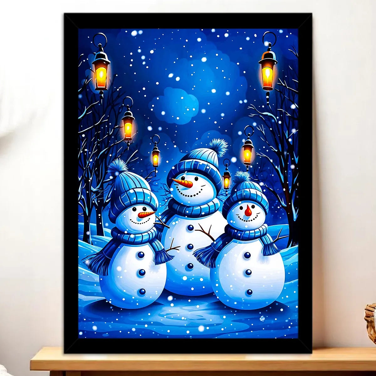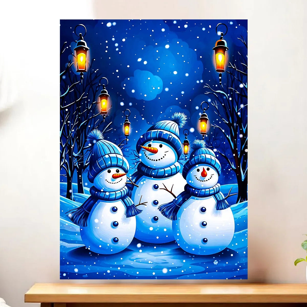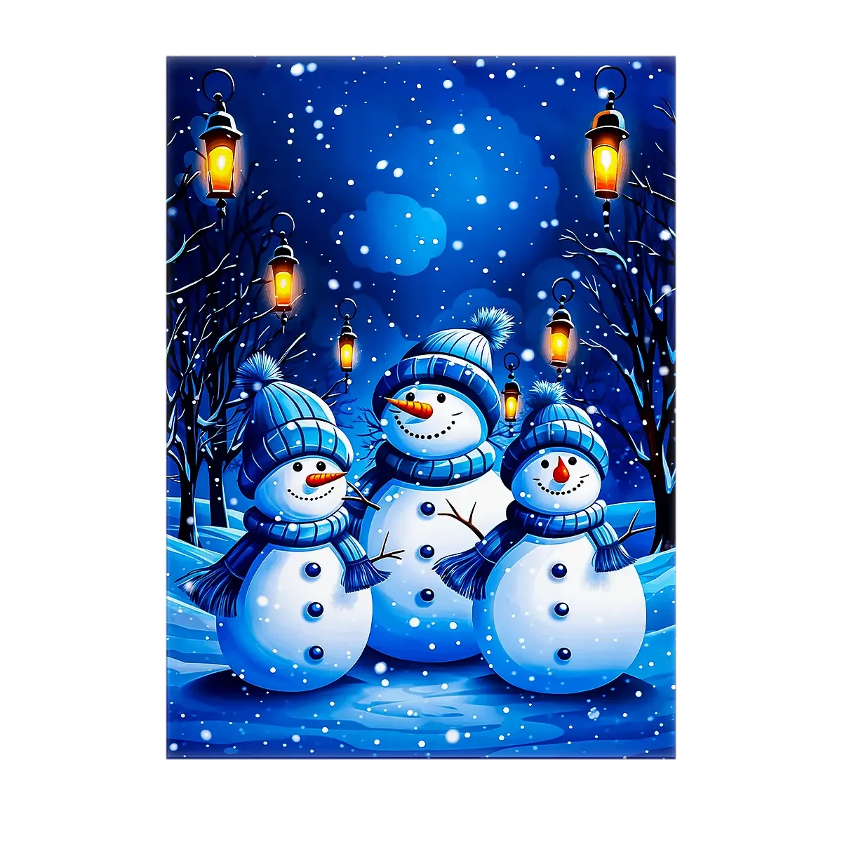 L’affiche reprend la même scène neigeuse imprimée en haute définition sur papier photo 200g. Disponible en formats classiques, elle se glisse facilement dans un cadre standard ou se laisse accrocher telle quelle pour habiller un coin de mur. C’est la version idéale si vous aimez varier les encadrements et multiplier les petites illustrations hivernales.