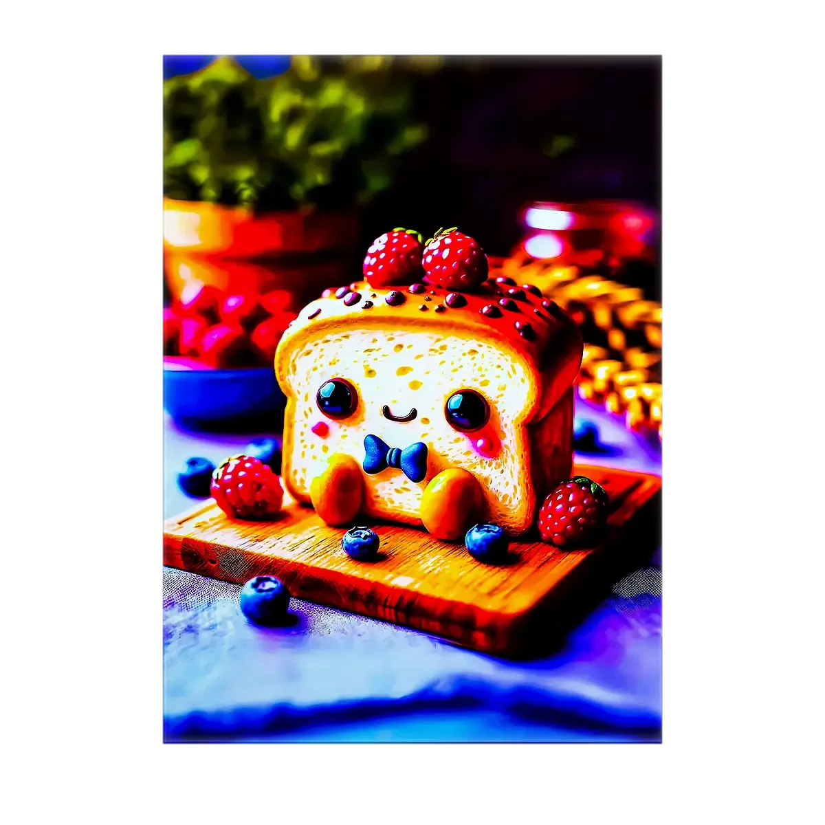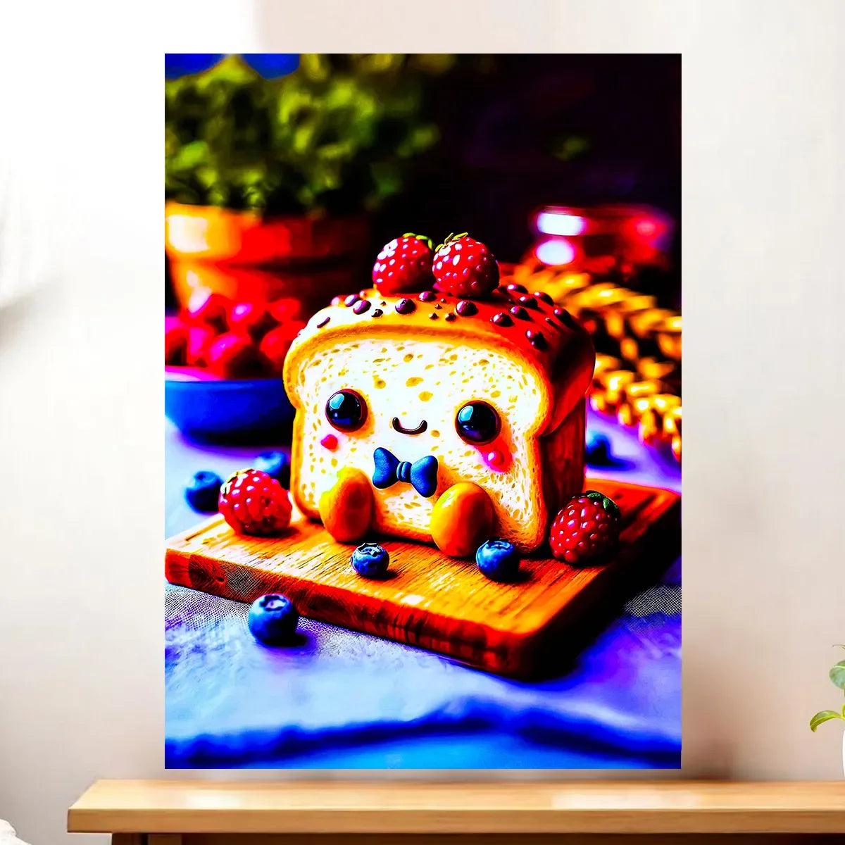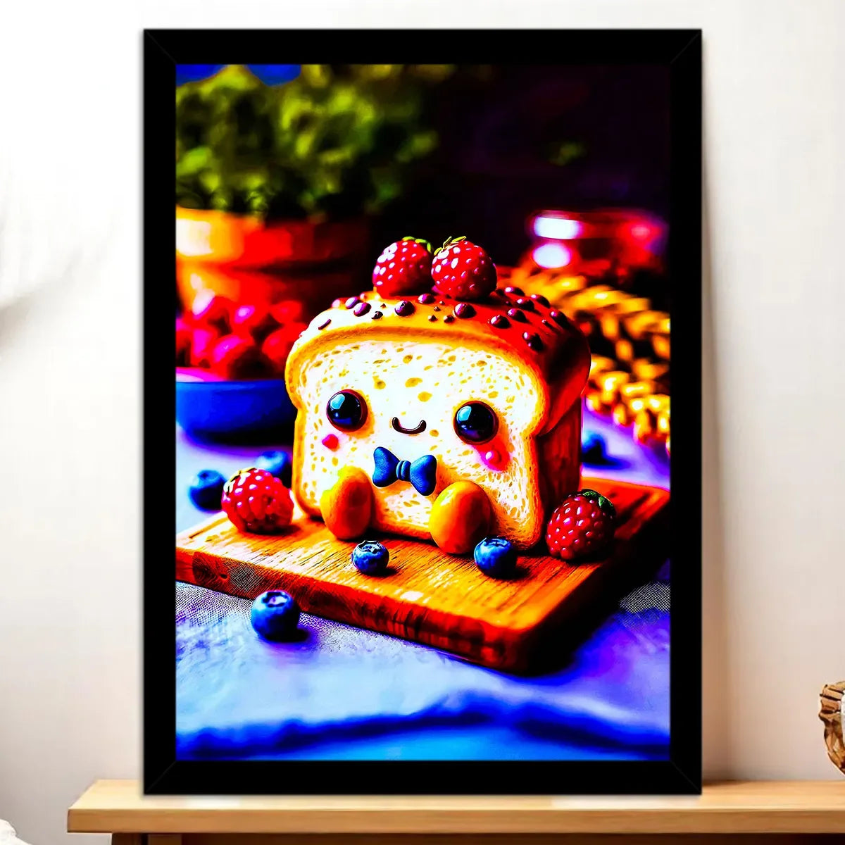Le tableau est proposé en toile tendue sur châssis en bois FSC, format 21×29 cm. La texture textile restitue la lumière de la croûte dorée et la douceur du moelleux, pour un rendu réaliste et chaleureux. C’est la version idéale si vous cherchez une pièce déco qui respire l’artisanat et la qualité.