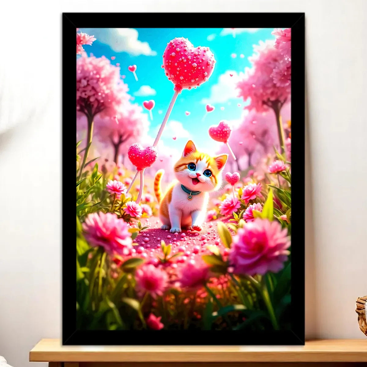 Tableau Chat Coeur — La tendresse féline qui réchauffe votre mur