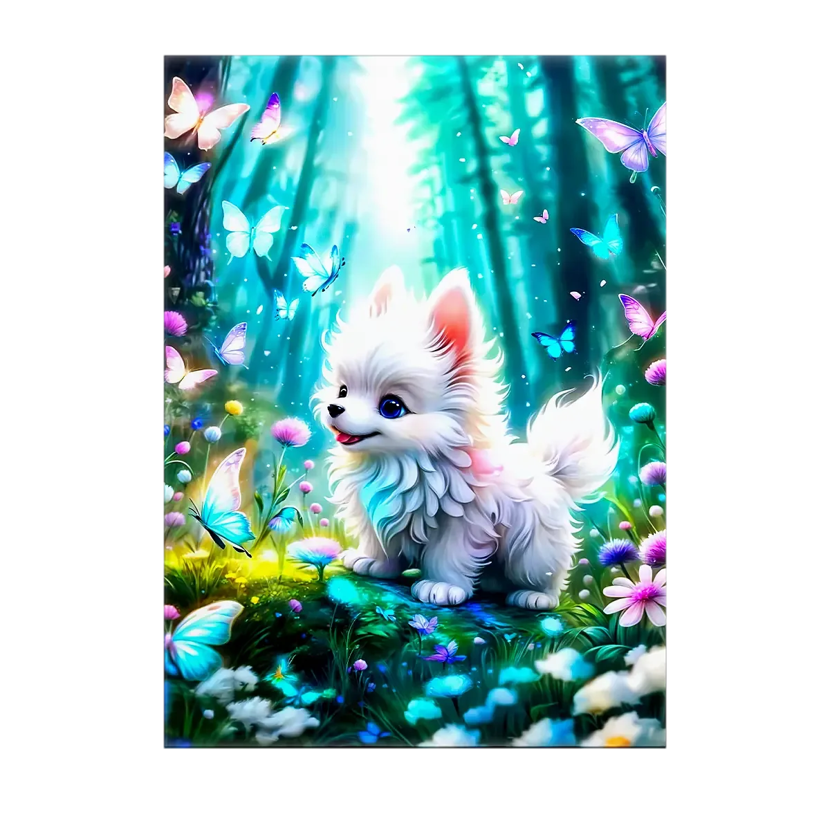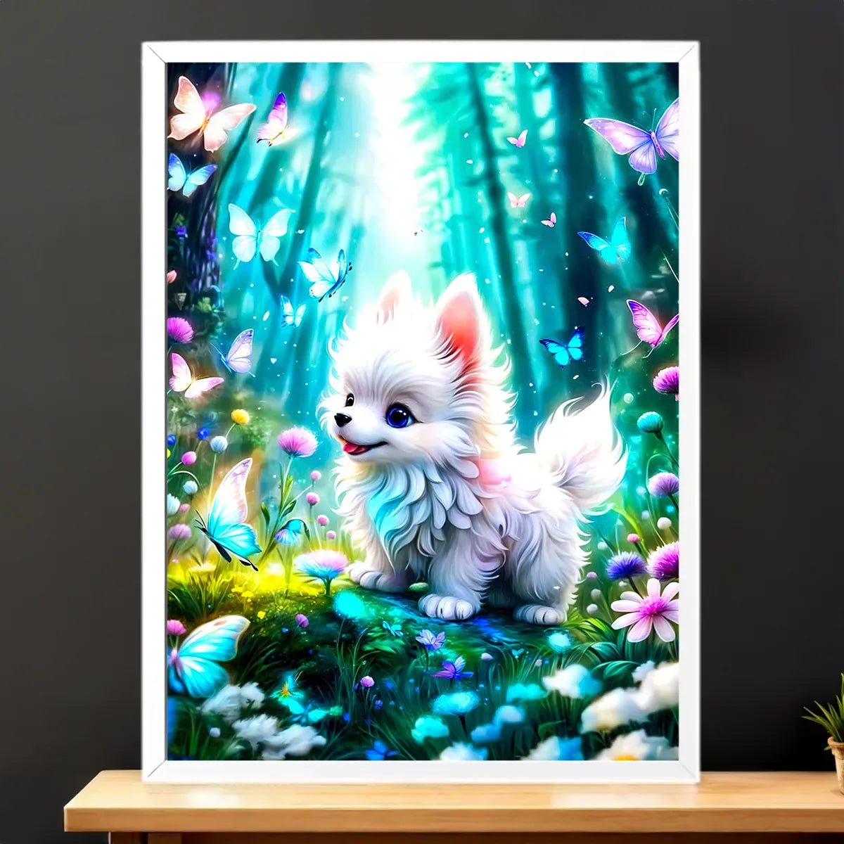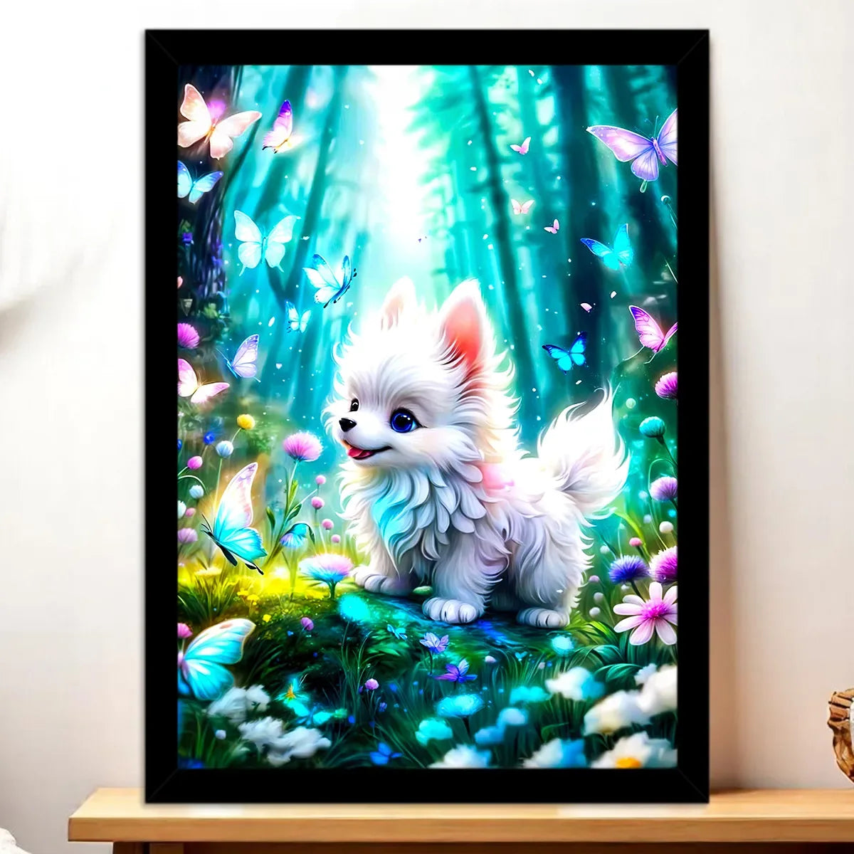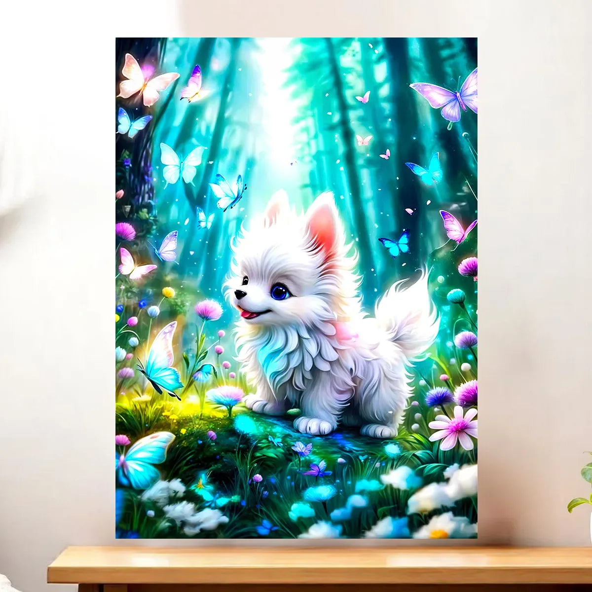 Imagine, on est là, à deux pas du canapé, et ce petit chien s’approche, curieux, tandis qu’un papillon pose sa joie sur sa truffe. Avouez… c’est le genre d’instant qui arrête le temps. Le Tableau Chien Papillon par Les Bois d’Aurore capture cette poésie fragile, cette lumière douce qui caresse les poils et les ailes. Franchement, c’est une invitation au sourire chaque matin.