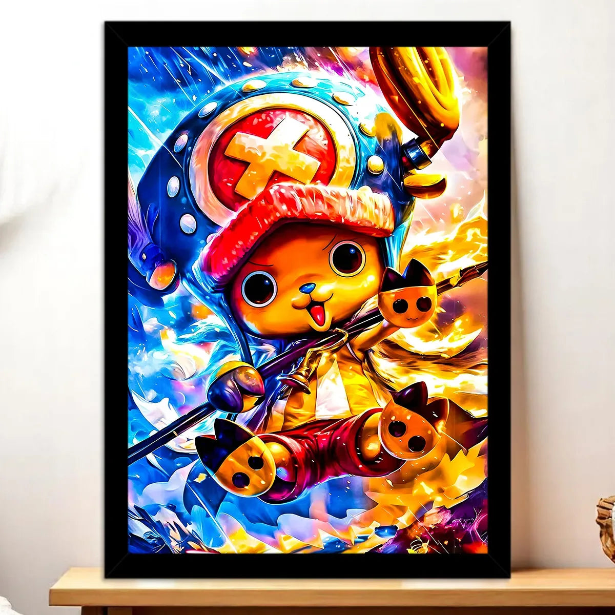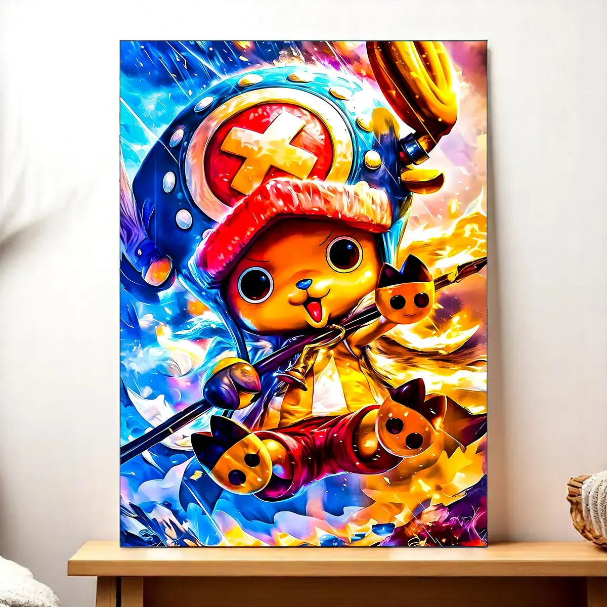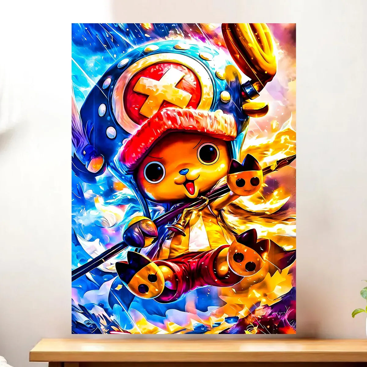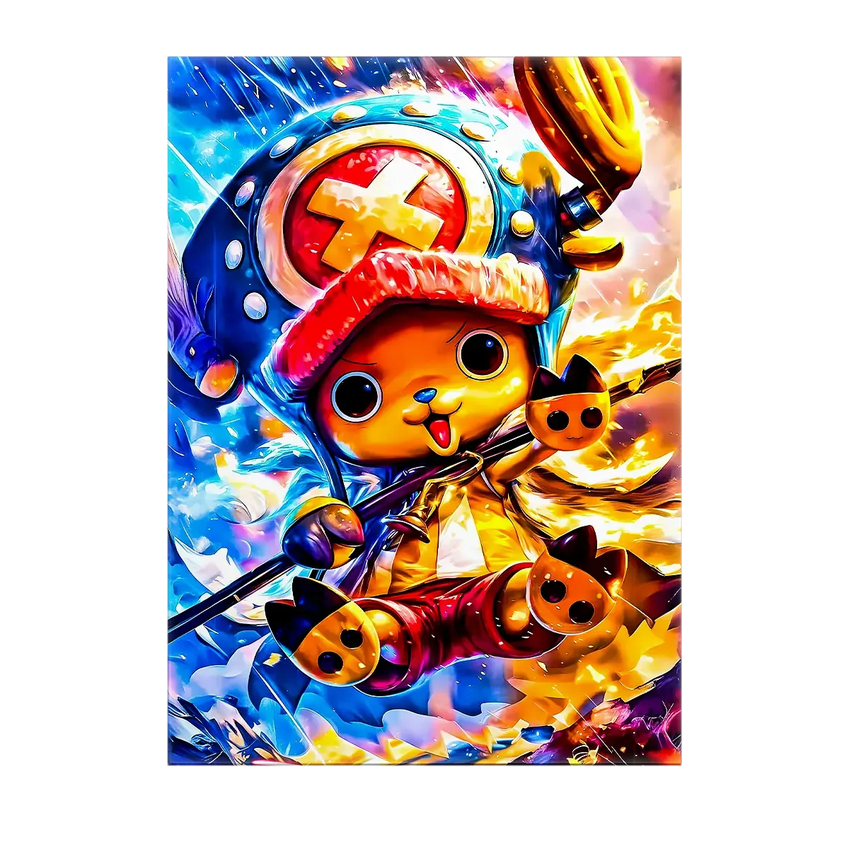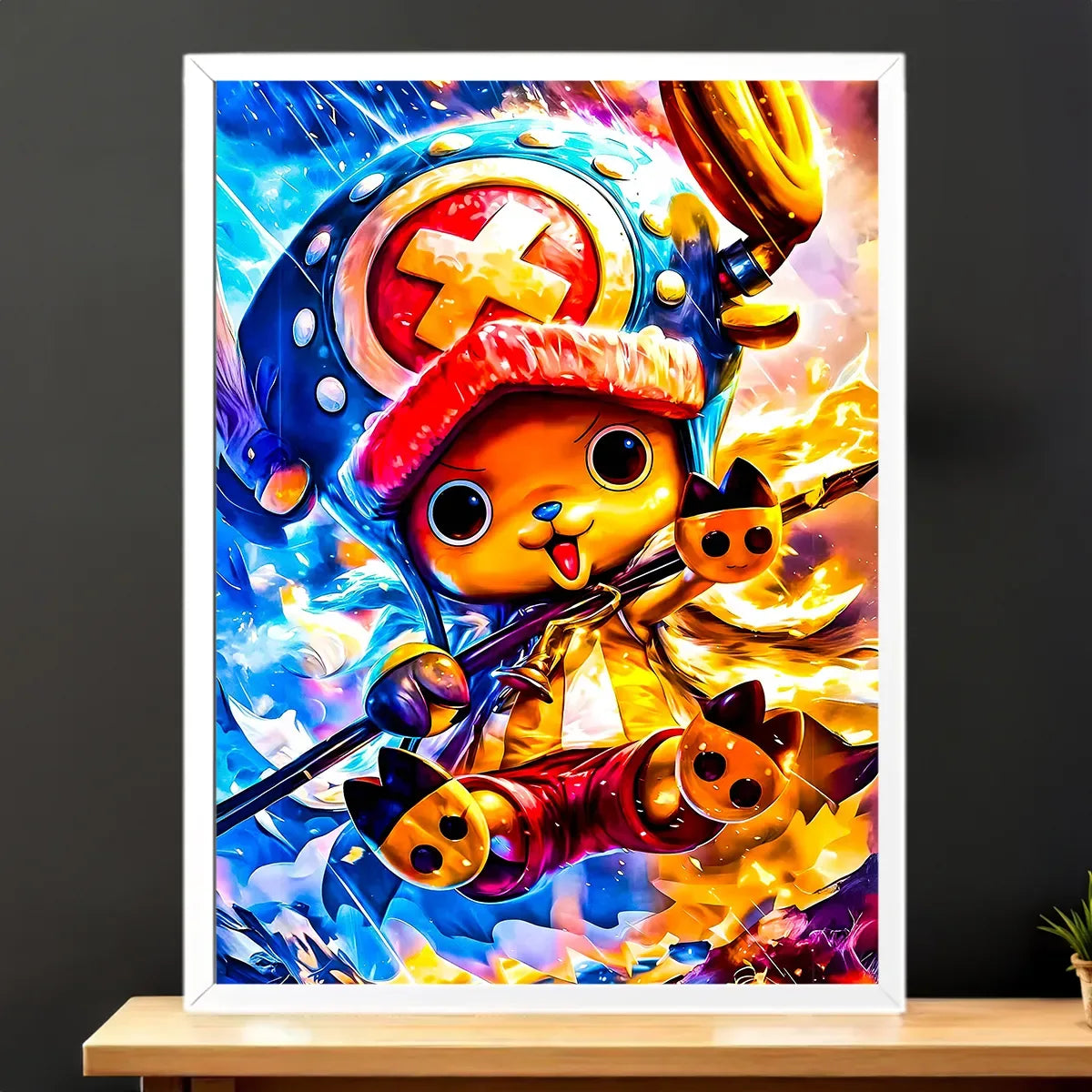 Mi-renne, mi-humain, avec un chapeau improbable et un cœur grand comme ça, Chopper débarque chez vous en mode déco. C’est le tableau parfait pour ceux qui veulent une touche kawaii et aventureuse à la maison. Avouez, avoir ce petit médecin pirate qui veille sur votre mur, ça change tout. Franchement, on dirait qu’il va bondir hors de la toile pour vous offrir une Rumble Ball.