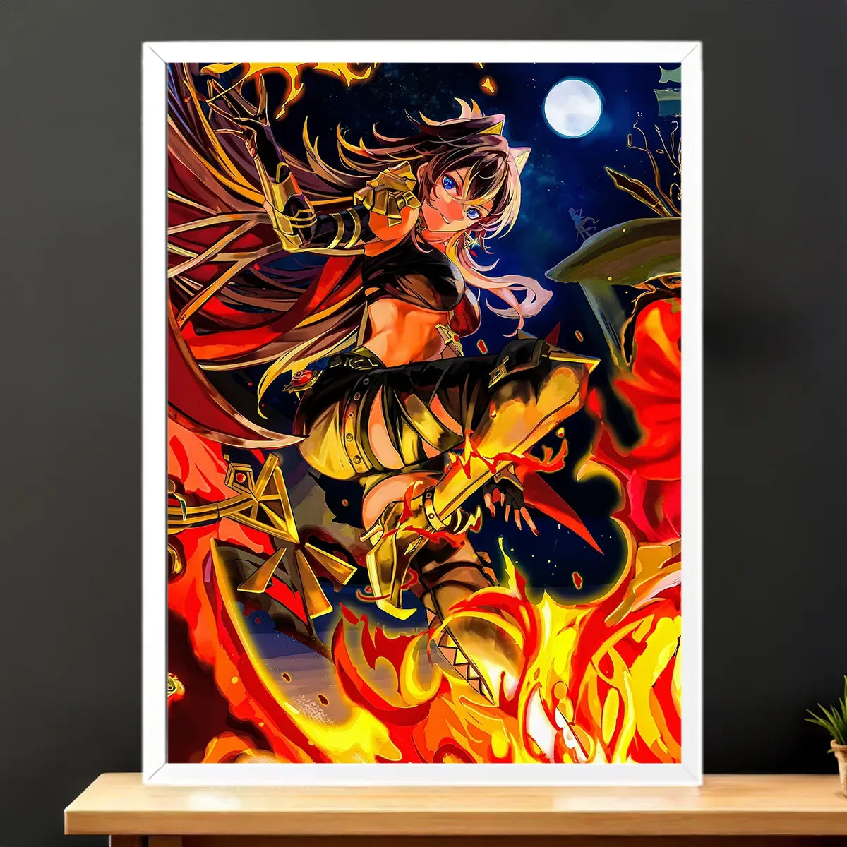 Une chaleur qui vous saisit et ce regard de lionne prête à tout, avouez c’est irrésistible. Le tableau Dehya ramène chez vous la mercenaire au grand cœur, sa claymore et l’énergie Pyro qui crépite autour d’elle. On dirait presque sentir la chaleur du désert et la texture de sa cape, franchement ça change l’ambiance d’une pièce. Ce visuel raconte une histoire, votre histoire déco.