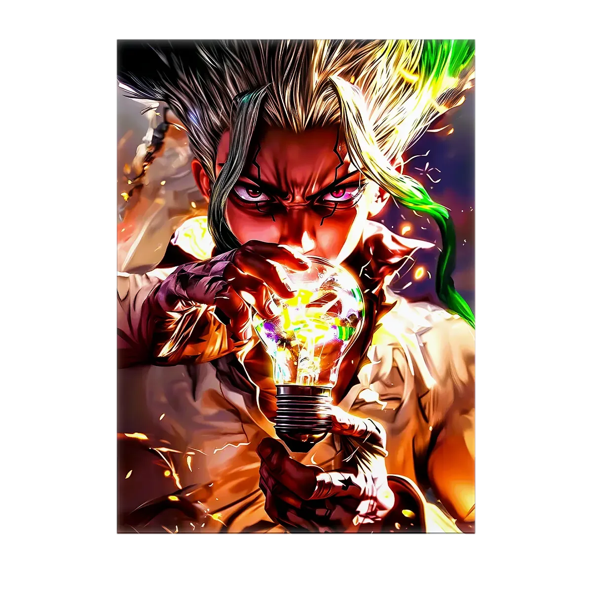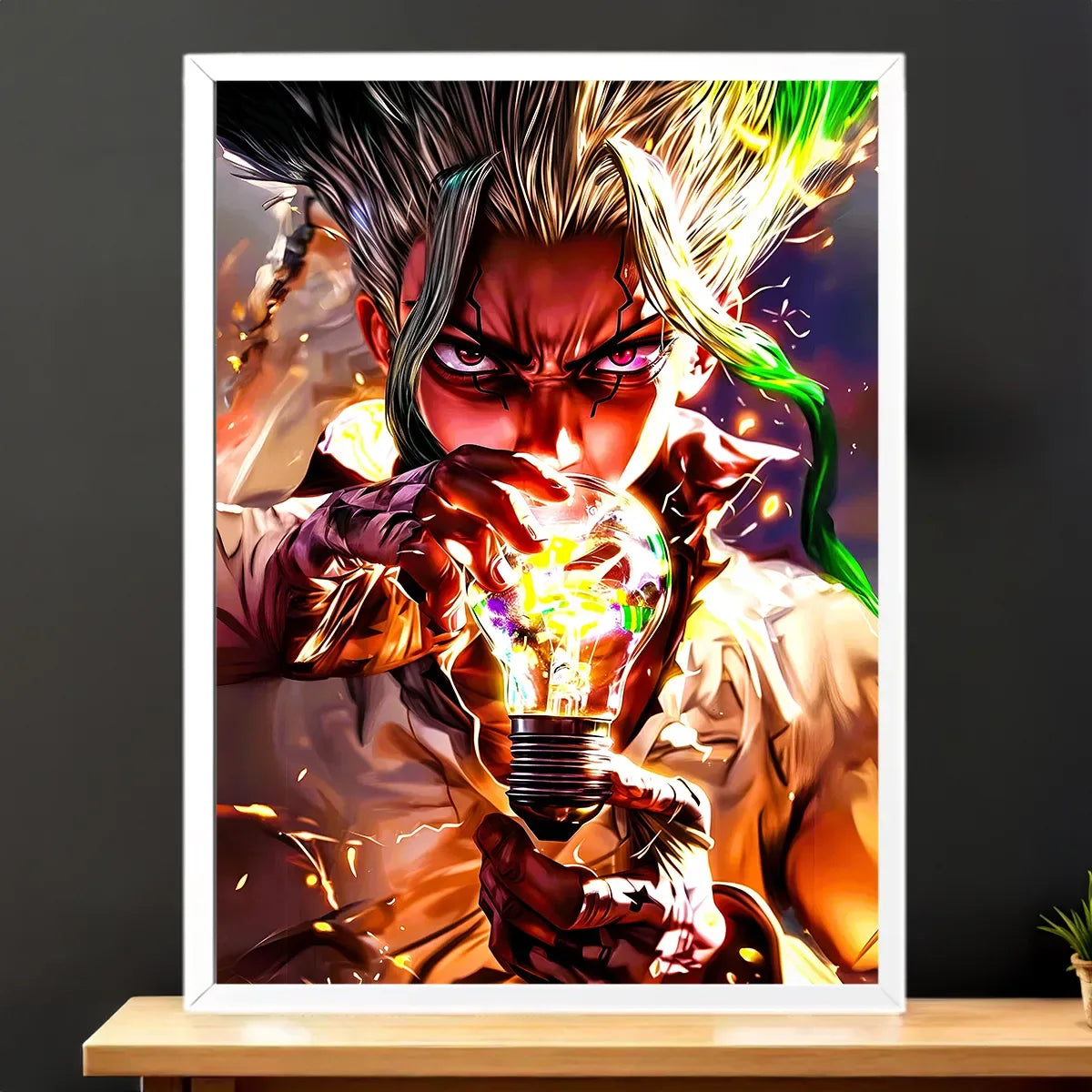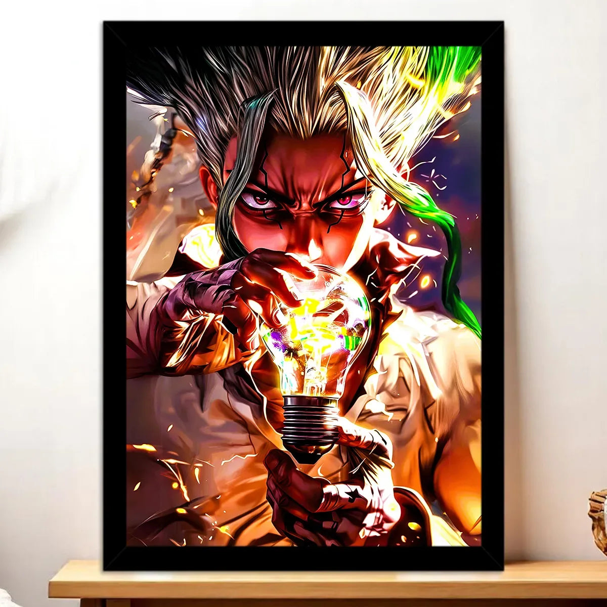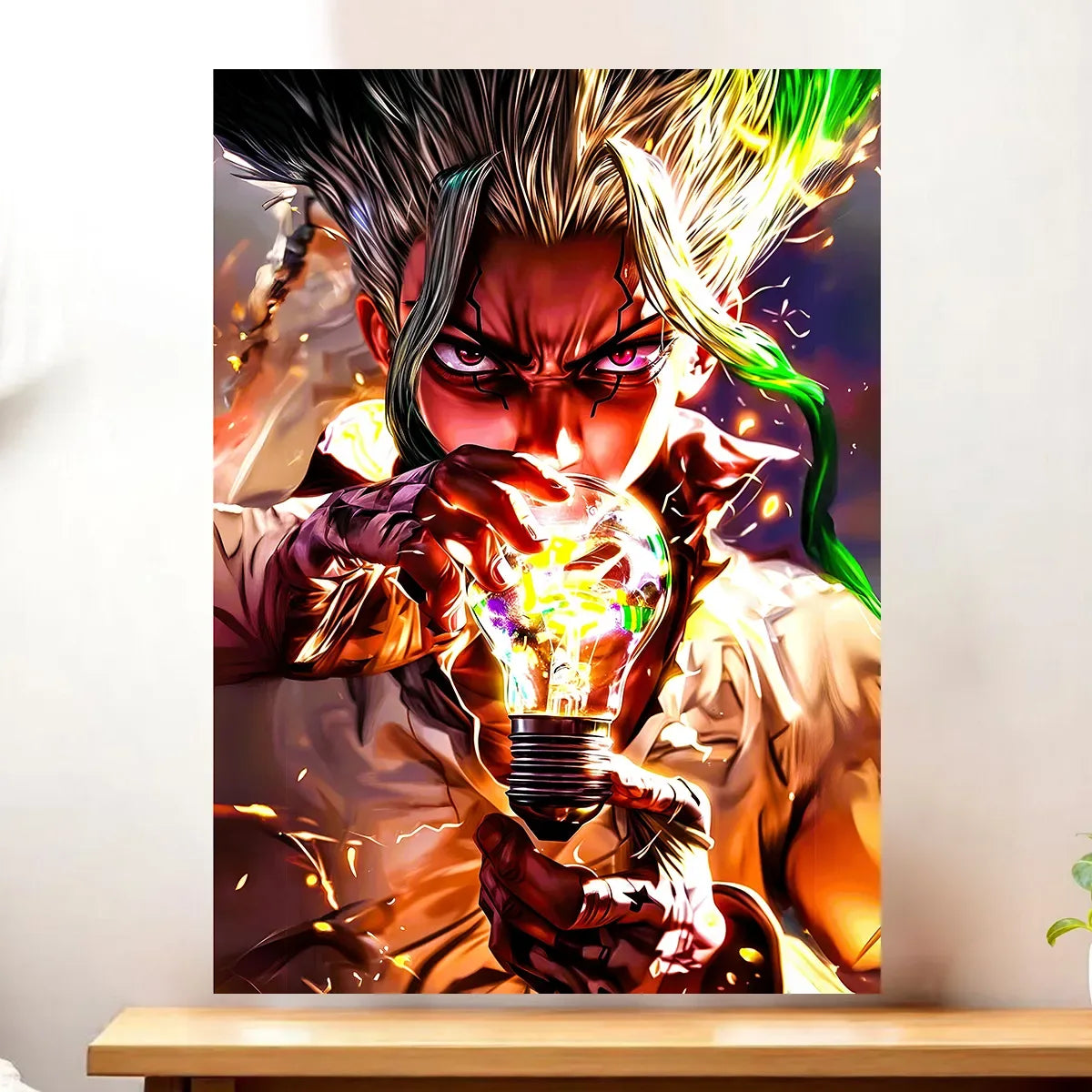Chaque création est une œuvre authentique, réalisée sans IA, qui capture l’esprit inventif de Dr Stone. Que vous optiez pour le tableau, l’affiche, le poster ou le cadre, le rendu premium transforme une simple image en manifeste visuel. On est d’accord: Senku mérite mieux qu’un coin discret, il mérite une place centrale. Le visuel joue avec la lumière, les contrastes et les détails, et soudain la pièce respire l’aventure et la science.