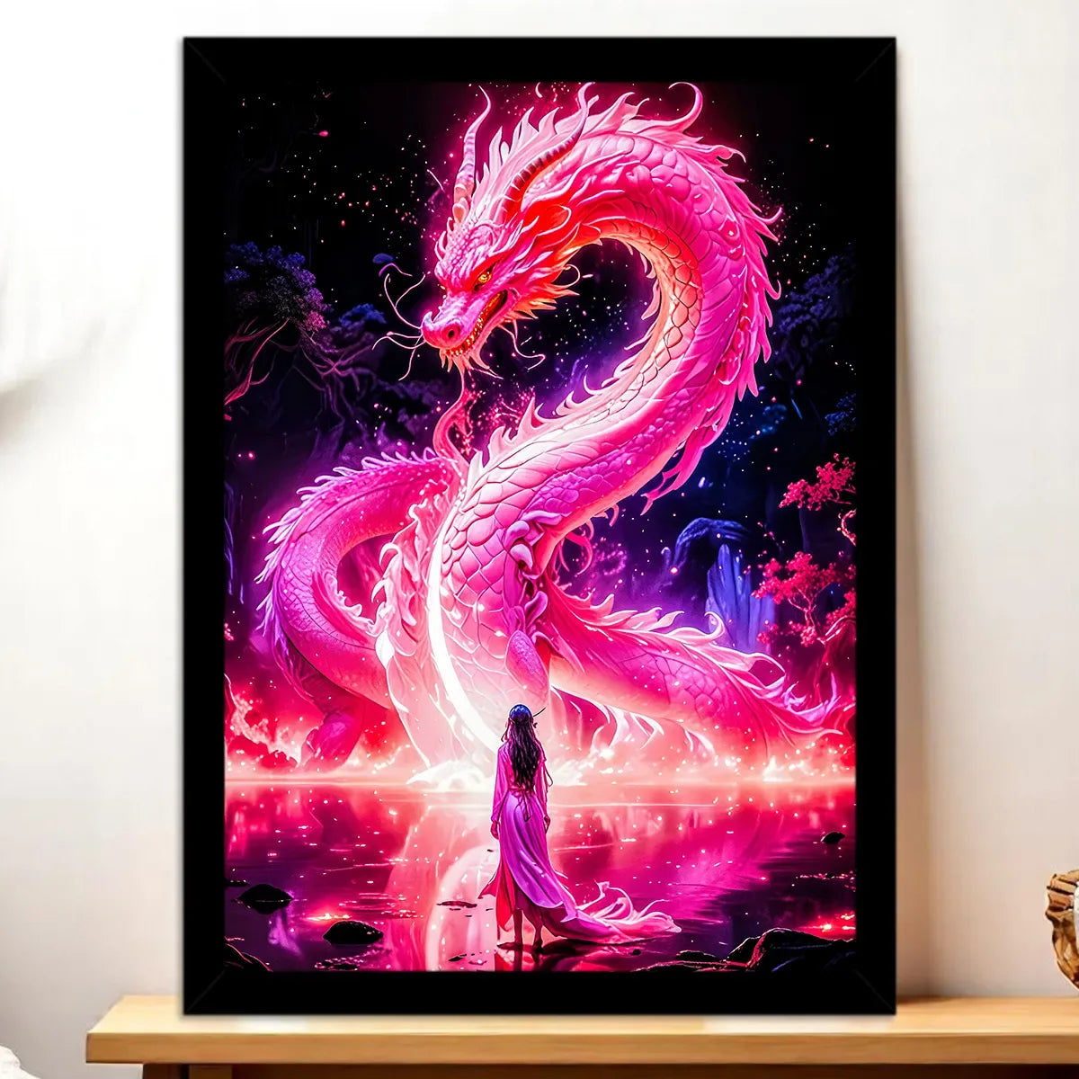 Voici un aperçu de votre futur Tableau Dragon Chinois Rose ✨