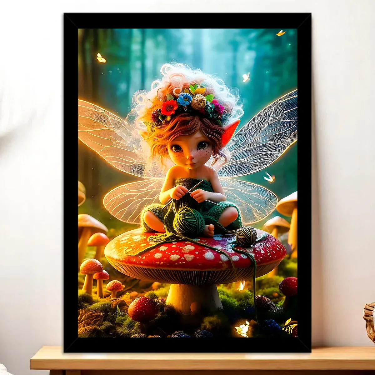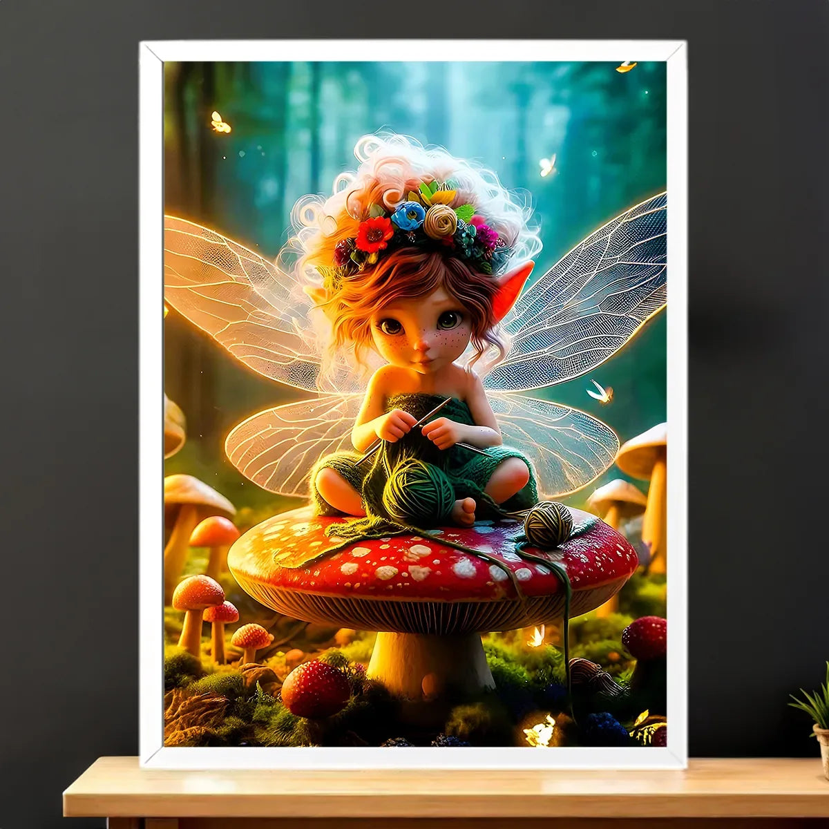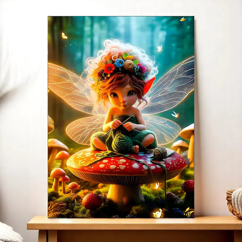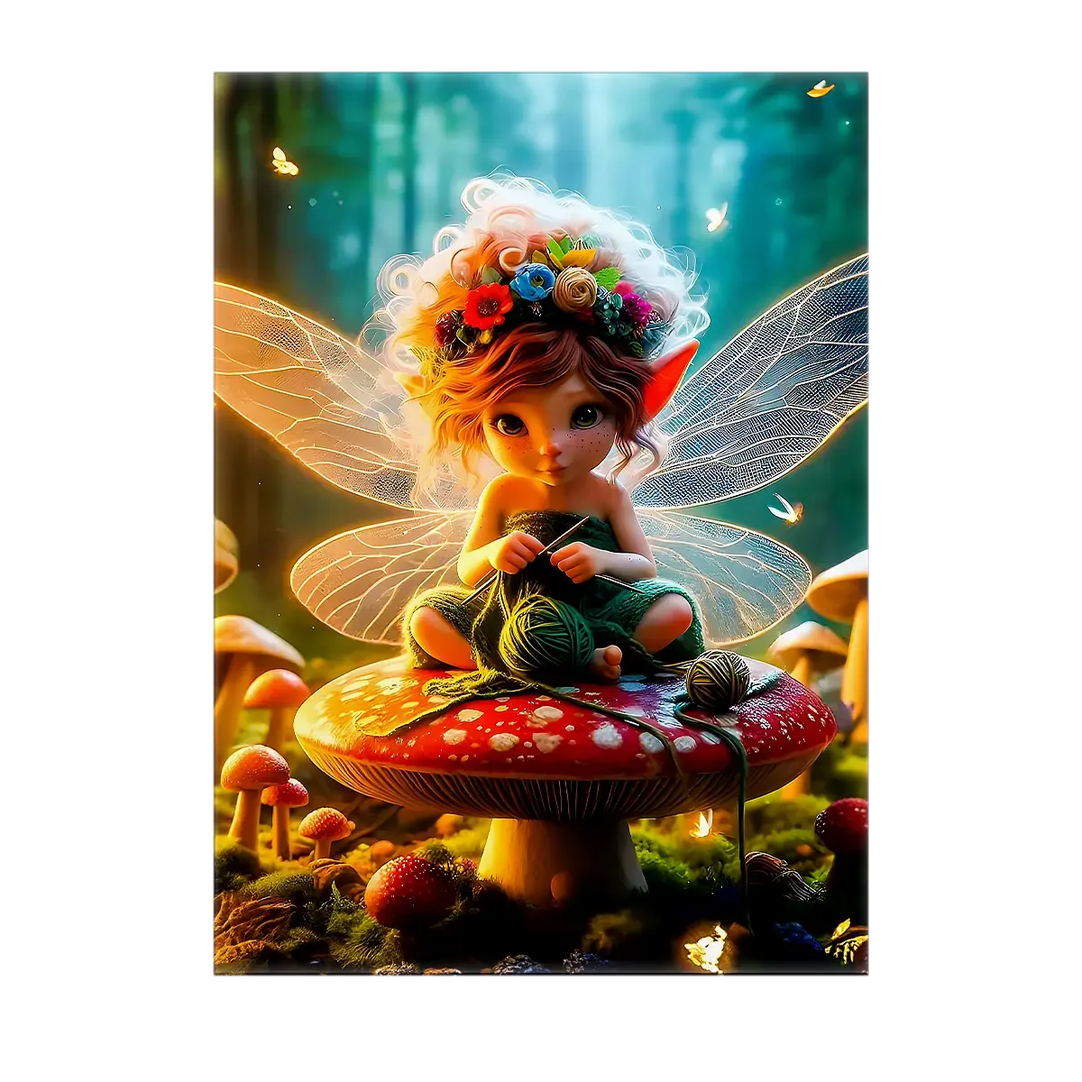 Envie d’un rendu plus cinématographique? Le poster Fée Tricot élargit la présence de la fée, comme une scène capturée en gros plan, lumineuse et enveloppante. Idéal pour les fans de décors poétiques qui veulent une affiche au rendu profond, presque tactile.