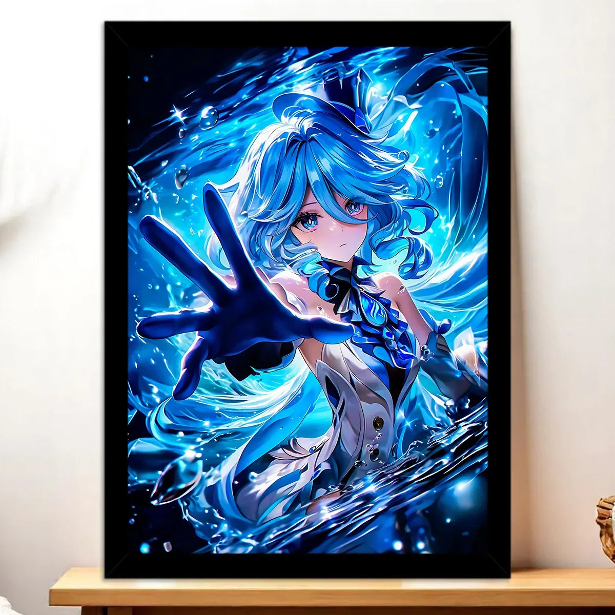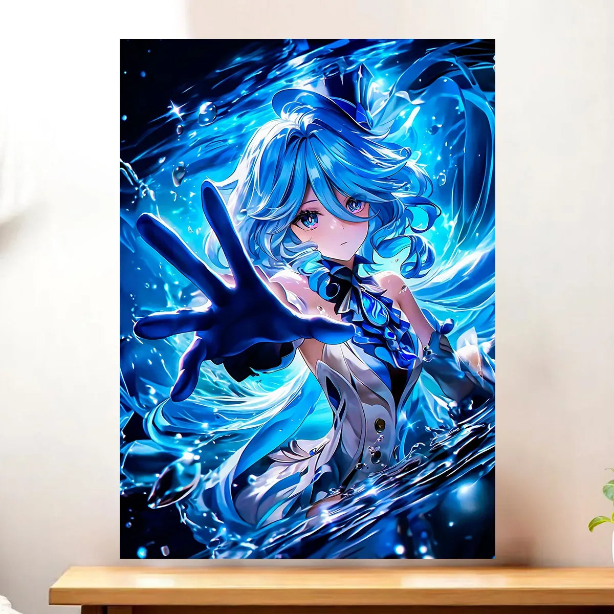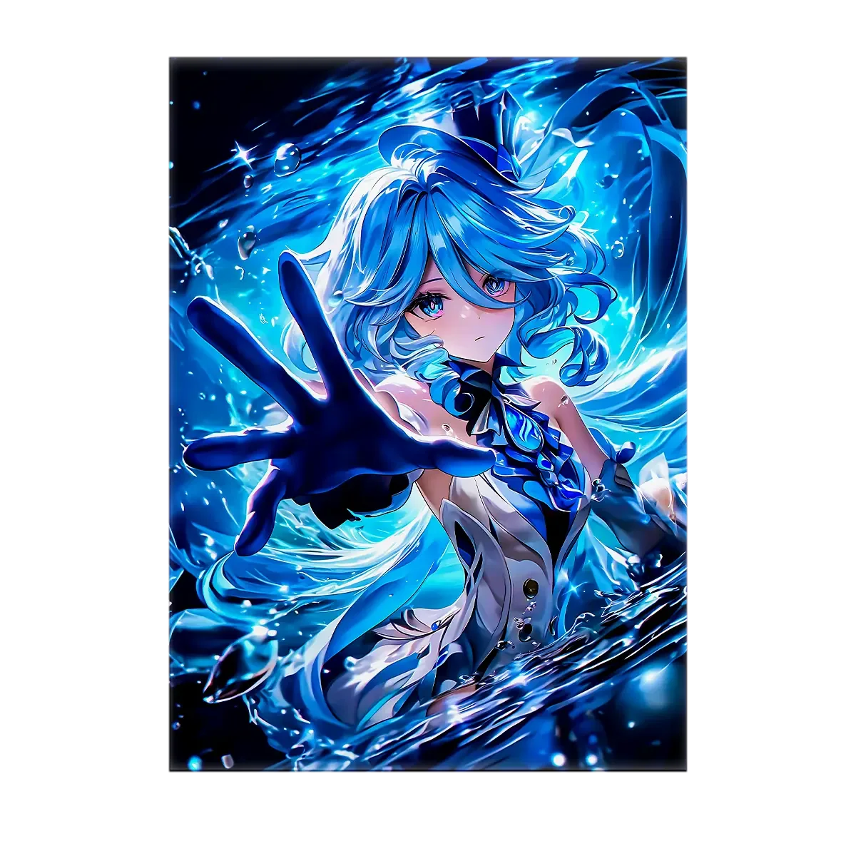 L’affiche Furina reprend l’intégralité du visuel, imprimée en haute définition sur papier photo 200g. Sans cadre, elle reste légère et modulable, parfaite pour composer une galerie murale ou ajouter une touche d’opéra hydro à un coin lecture. La finition satinée restitue les reflets aquatiques et les nuances de bleu comme une onde de scène.