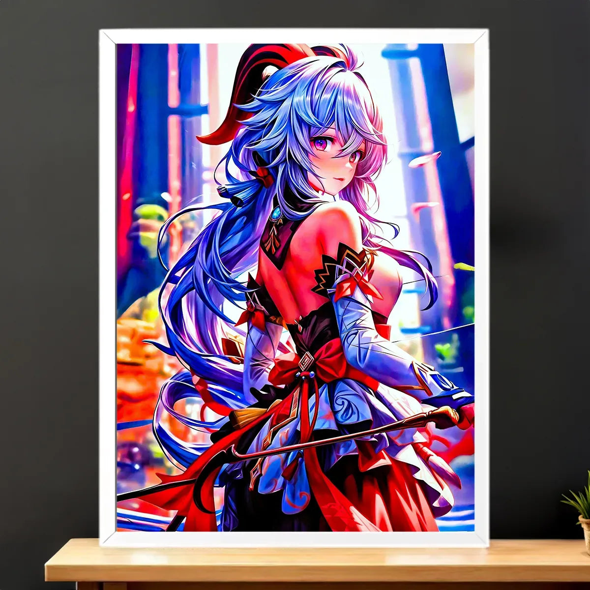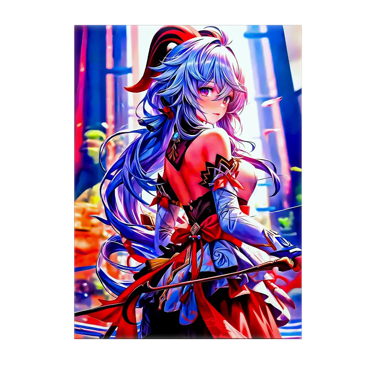 Le poster Ganyu joue la carte cinématographique. Plus ample, plus vivant, il restitue la profondeur des couleurs Cryo et l’éclat des détails. Posé dans une chambre ou un salon, le poster capte la lumière et transforme l’espace, comme une scène figée sortie d’un conte de Liyue.