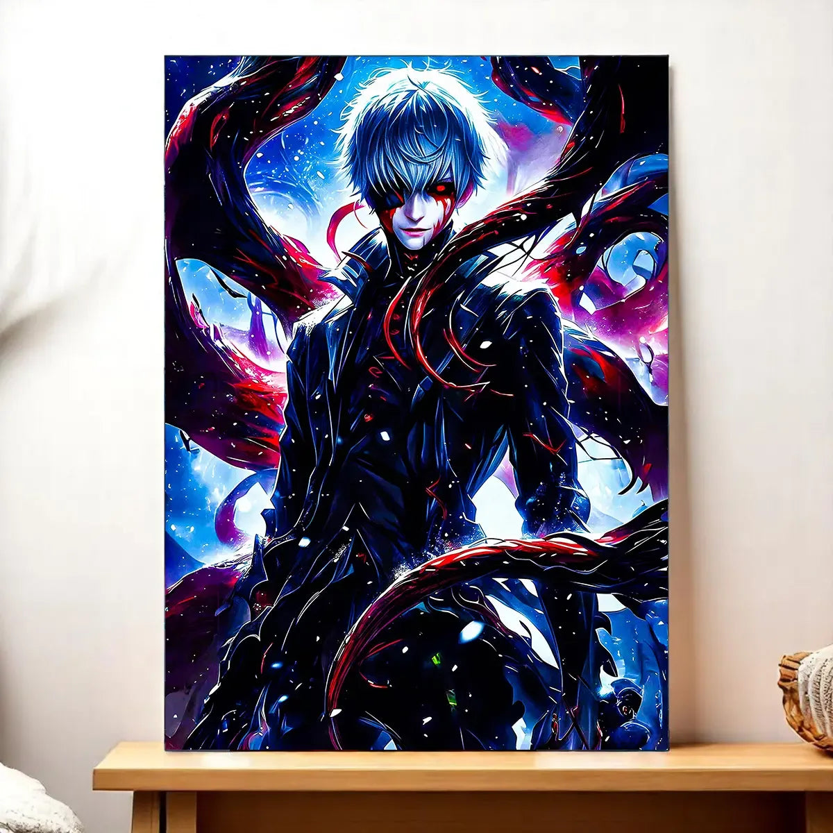 Chaque visuel est une création authentique, faite à la main et sans IA, qui capture l’âme de Kaneki. Le rendu premium sublime le masque, les cheveux blancs et les ombres qui jouent sur son visage. Que vous choisissiez le tableau, l’affiche, le poster ou le cadre, vous obtenez une œuvre qui parle, qui vibre et qui transforme votre espace.