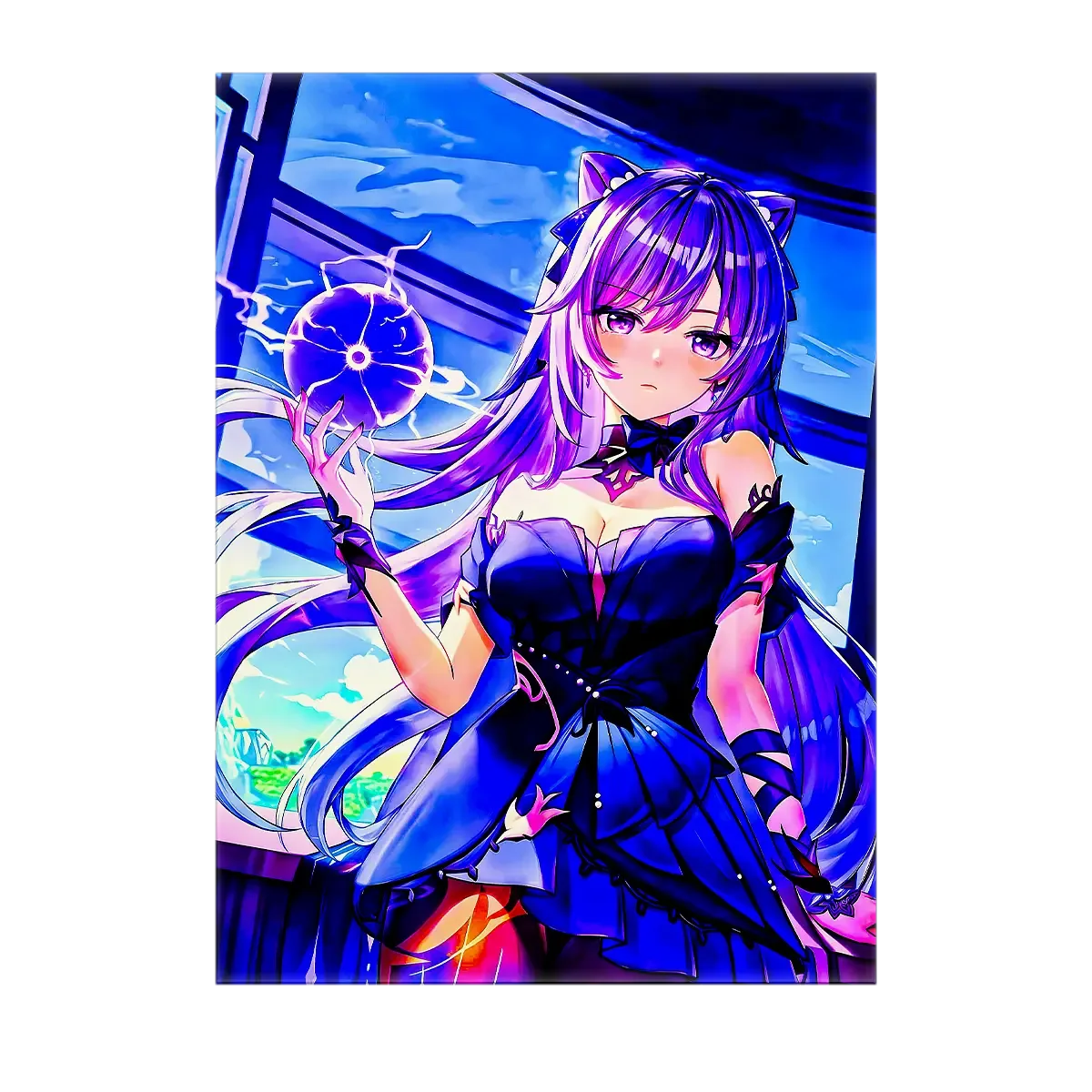 Un éclair violet traverse l’air, une silhouette gracile se dresse, et tout devient énergie. Avec ce Tableau Keqing, vous invitez chez vous une héroïne qui mêle finesse et puissance. Création réalisée à la tablette graphique, le visuel capte la détermination de Keqing et sa lumière singulière. Avouez… avoir Keqing au mur, c’est instantanément du caractère dans la pièce.