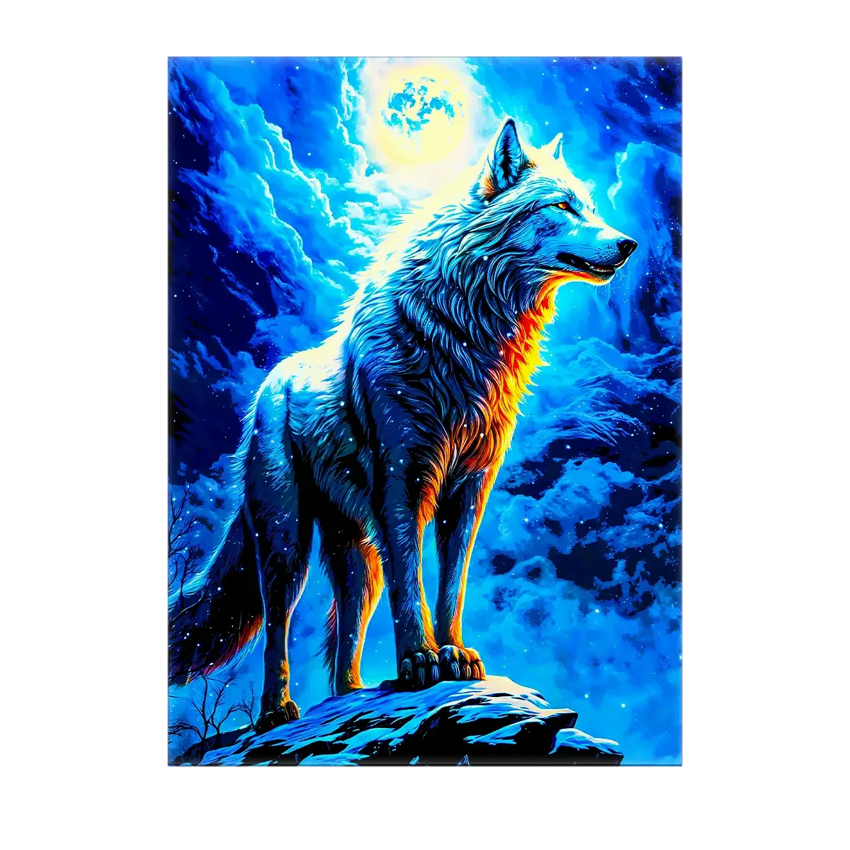 💥 Loup mystique | 🔵 Contraste intense | ✨ Finition premium