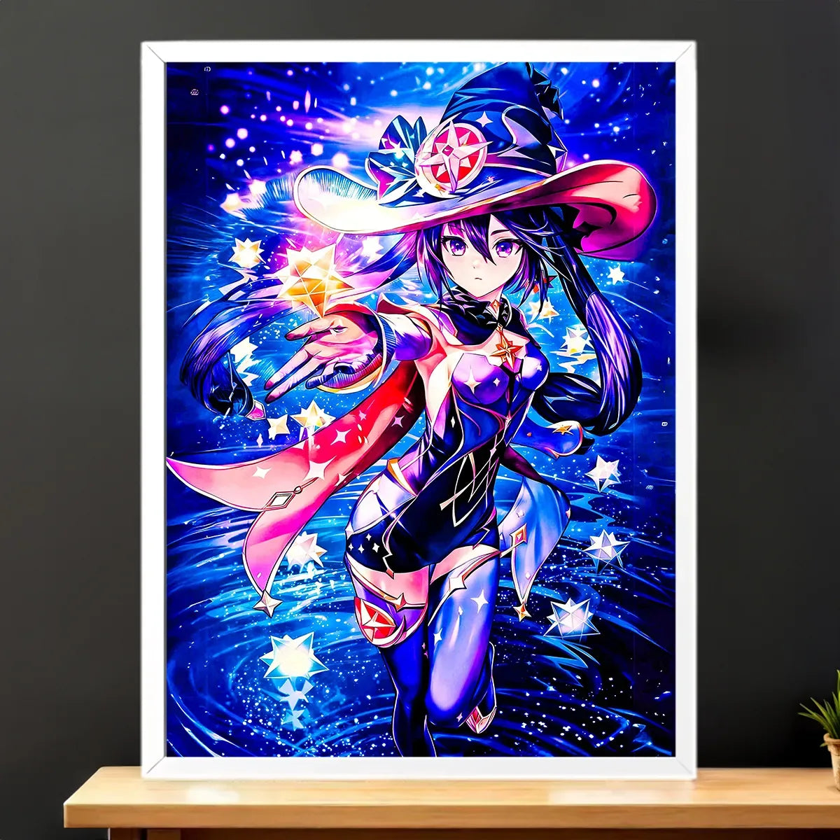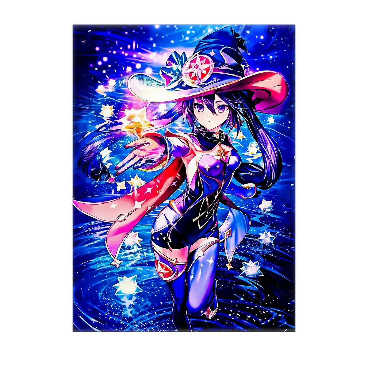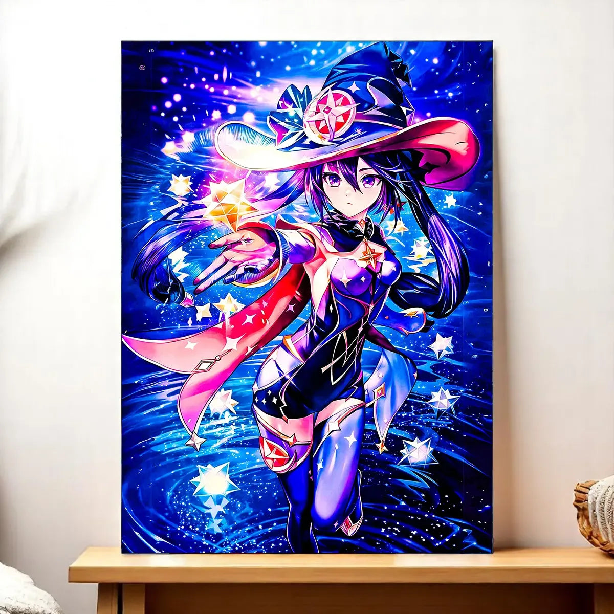 Un souffle de nuit, une robe qui capte la lumière et ce regard qui semble lire l’avenir. Avec le tableau Mona vous invitez l’astrologue la plus énigmatique de Mondstadt chez vous. L’illustration respire le cosmos, les textures vibrent, on a presque la sensation des étoiles qui frôlent le mur. Avouez… accrocher Mona, c’est donner un peu de magie à votre pièce.