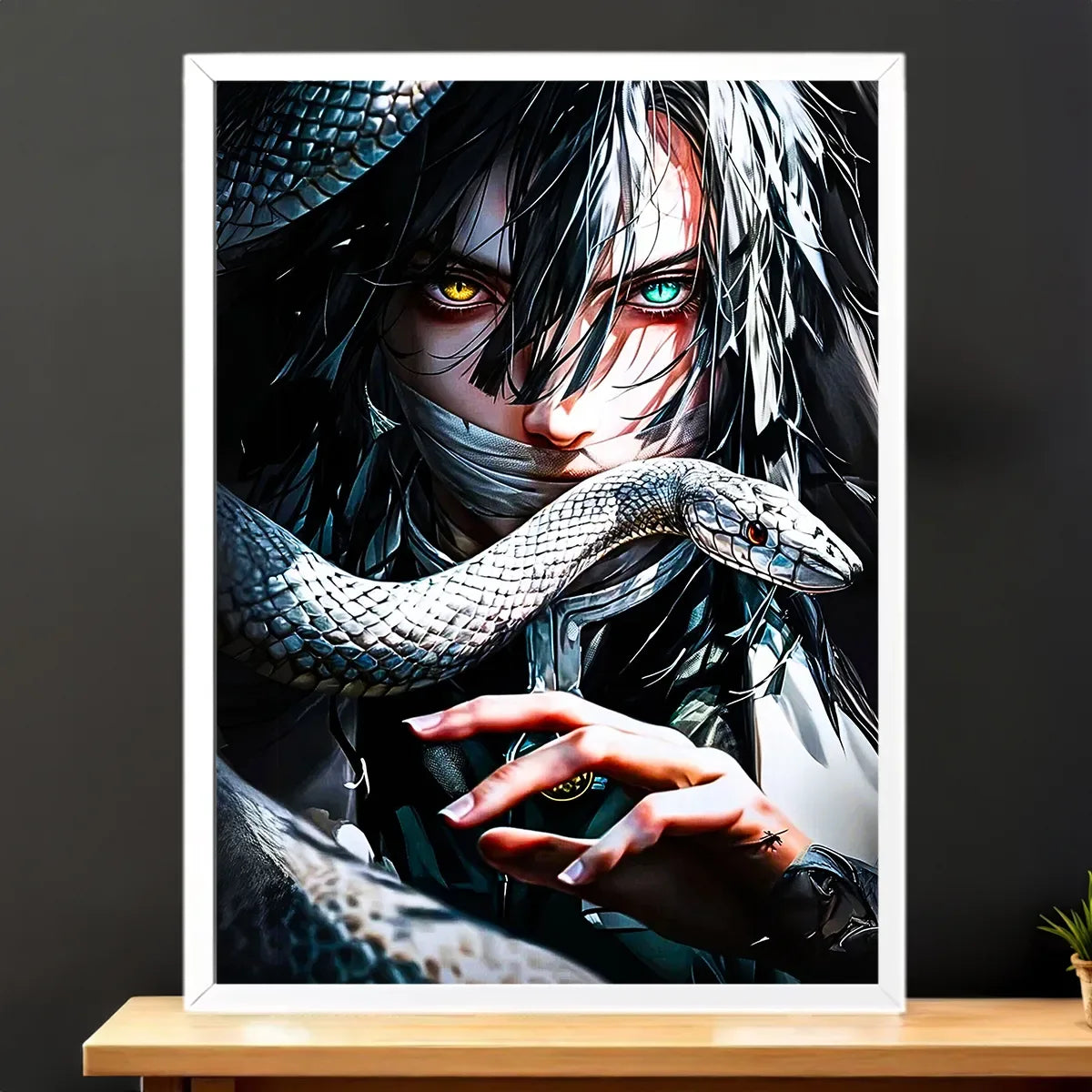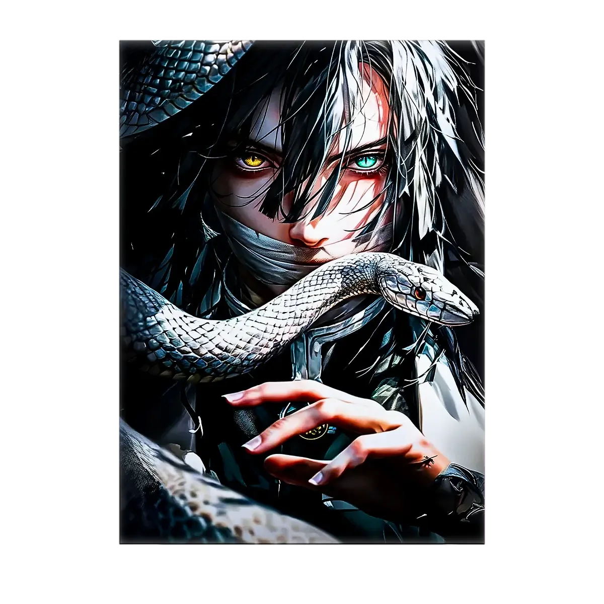 Le tableau est proposé en toile tendue sur châssis FSC au format 21×29 cm, un rendu artistique qui fait vibrer la texture et la profondeur du visuel. La toile amplifie les ombres et les lumières, on sent presque la soie du bandeau et le frisson du serpent.