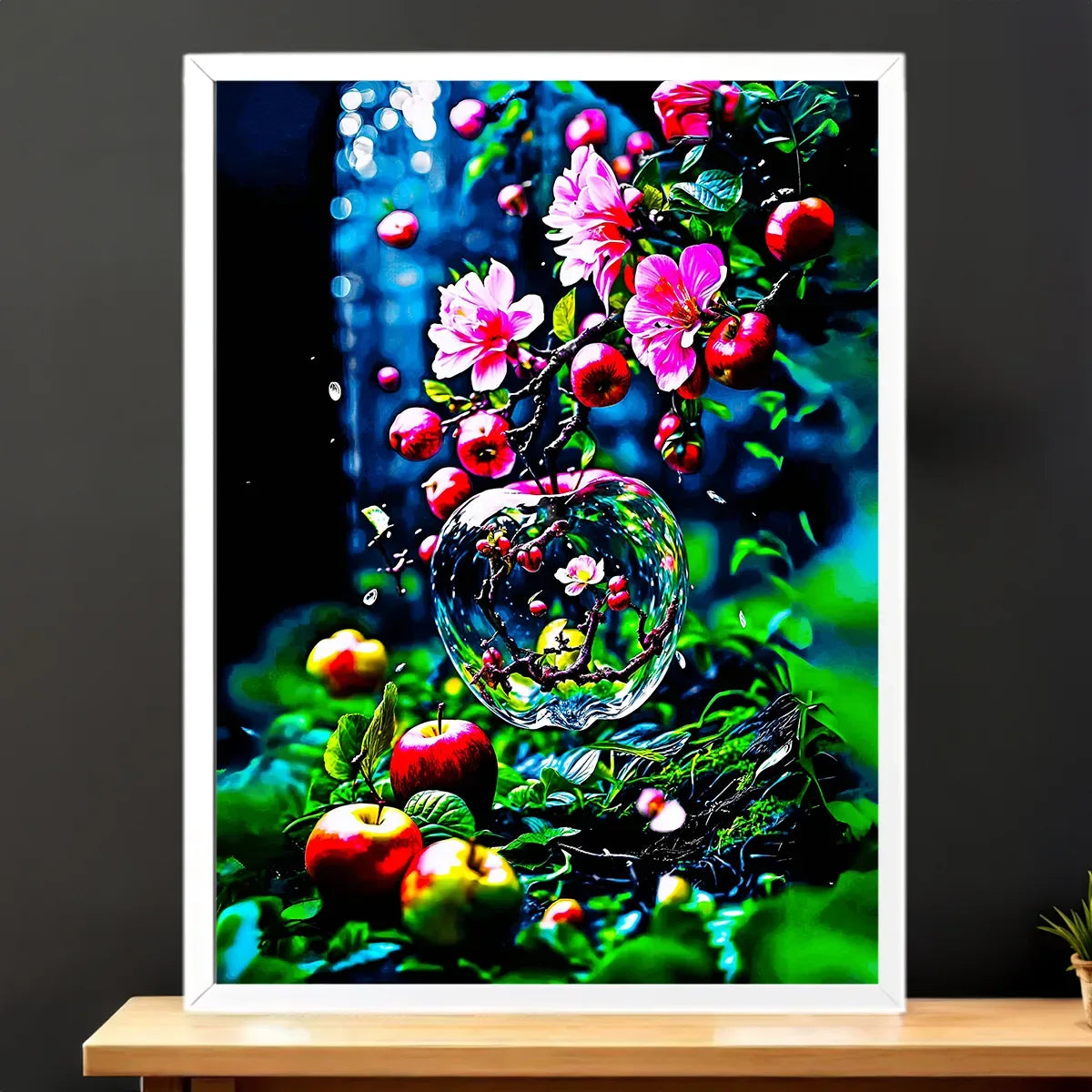 Chaque visuel est une création authentique et faite main, loin des images générées automatiquement. Le tableau, l’affiche, le poster ou le cadre racontent la même micro histoire d’été et de simplicité. On sent la peau lisse de la pomme, la lumière qui caresse les dégradés et cette envie immédiate de rendre votre pièce plus accueillante. Franchement, c’est le détail déco qui fait sourire chaque matin.