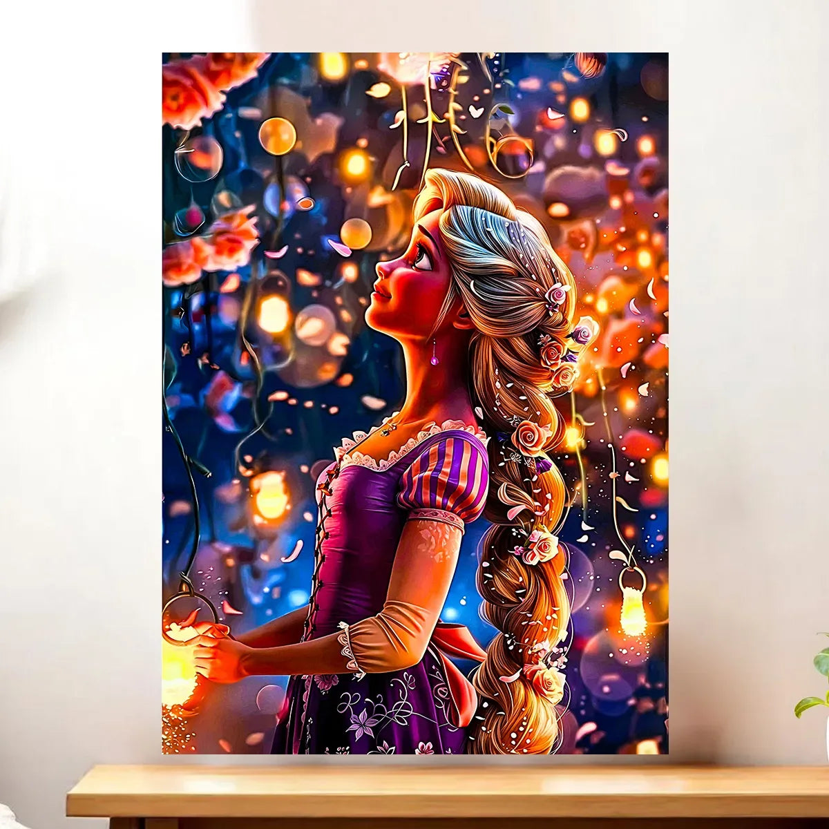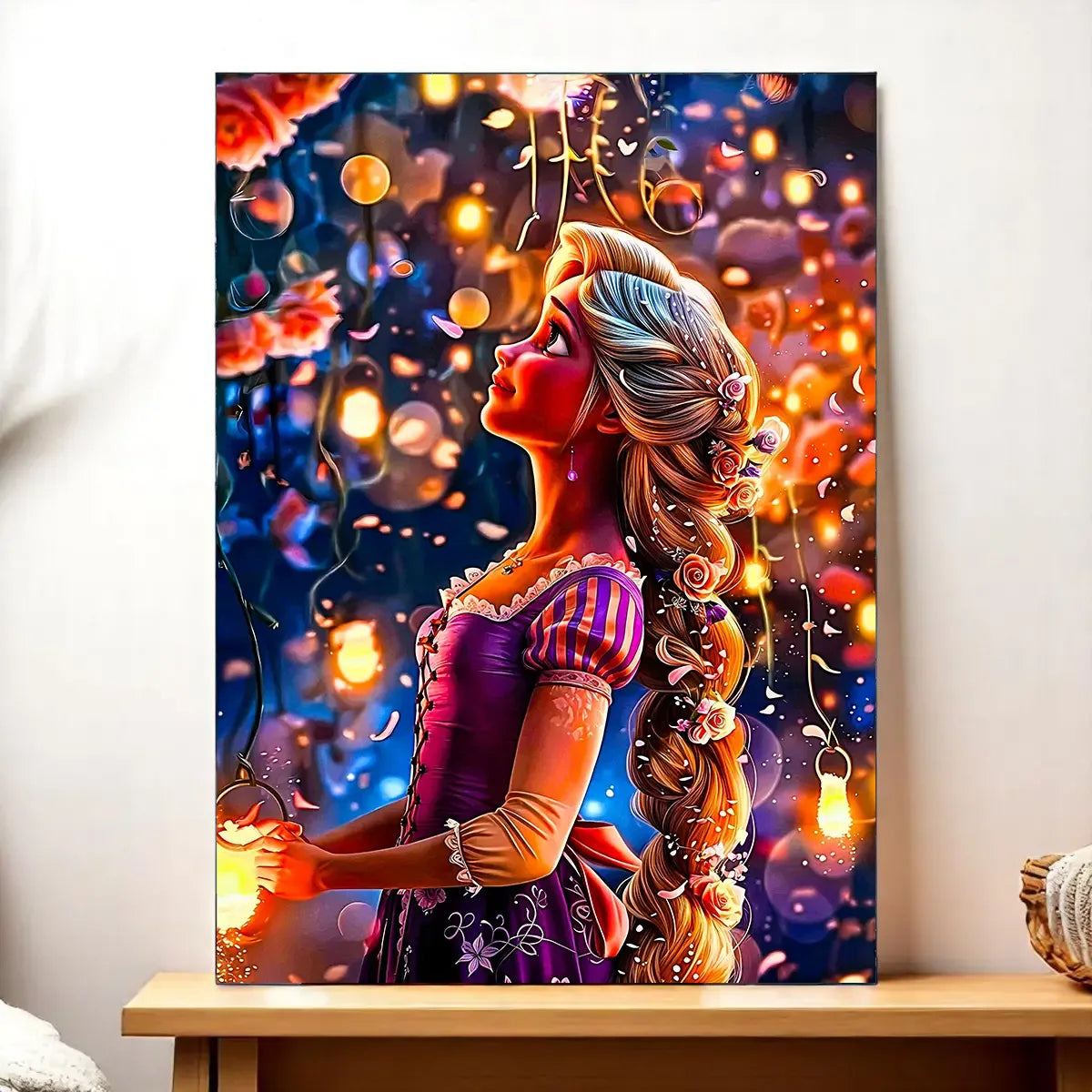 Parce que chaque pièce est pensée comme une petite histoire, réalisée à la main avec soin. Le visuel capture l’essence de Raiponce, sa douceur et cette lumière presque tangible. Que vous optiez pour le tableau, l’affiche, le poster ou le cadre, vous offrez à votre décoration une touche de rêve Disney. Franchement, on est d’accord: c’est plus qu’une image, c’est une ambiance.