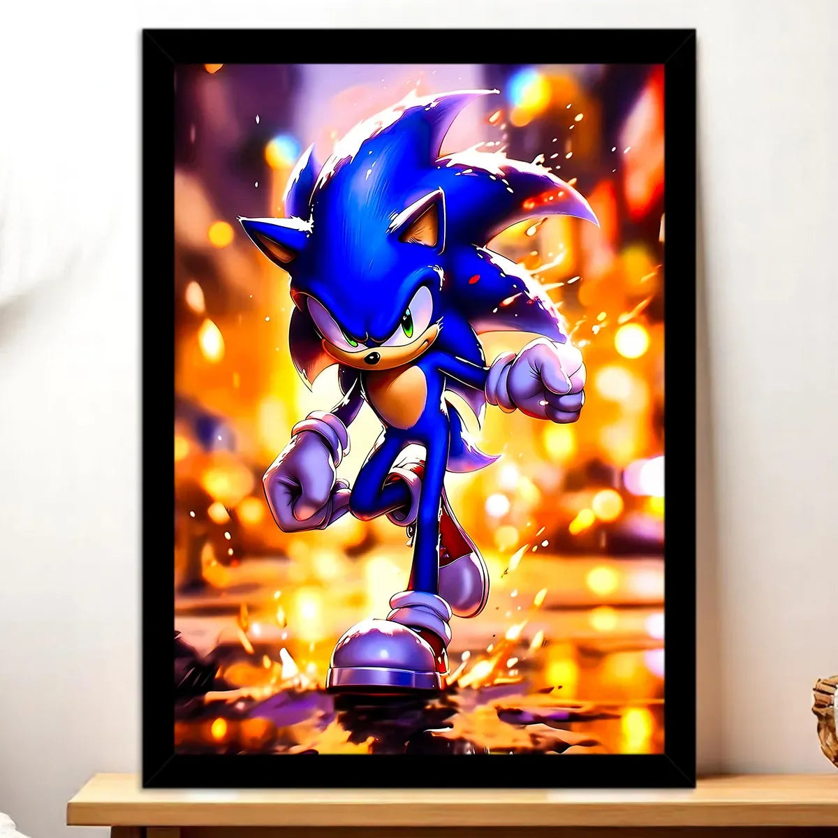 Le tableau existe en toile tendue sur châssis bois FSC, format exclusif 21×29 cm. Une toile qui donne du relief, une texture chaleureuse, parfaite pour transformer Sonic en véritable pièce maîtresse déco. On est d’accord, le rendu a ce petit grain artisanal qui rend l’œuvre vivante.