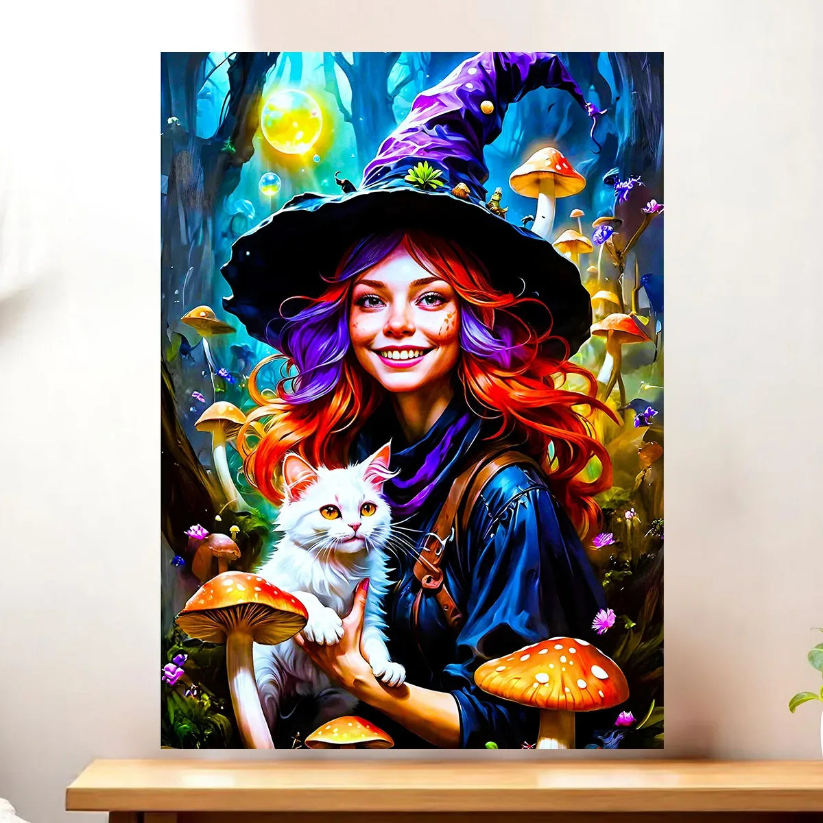 Tableau Sorcière Champignon – Conte lumineux et malicieux