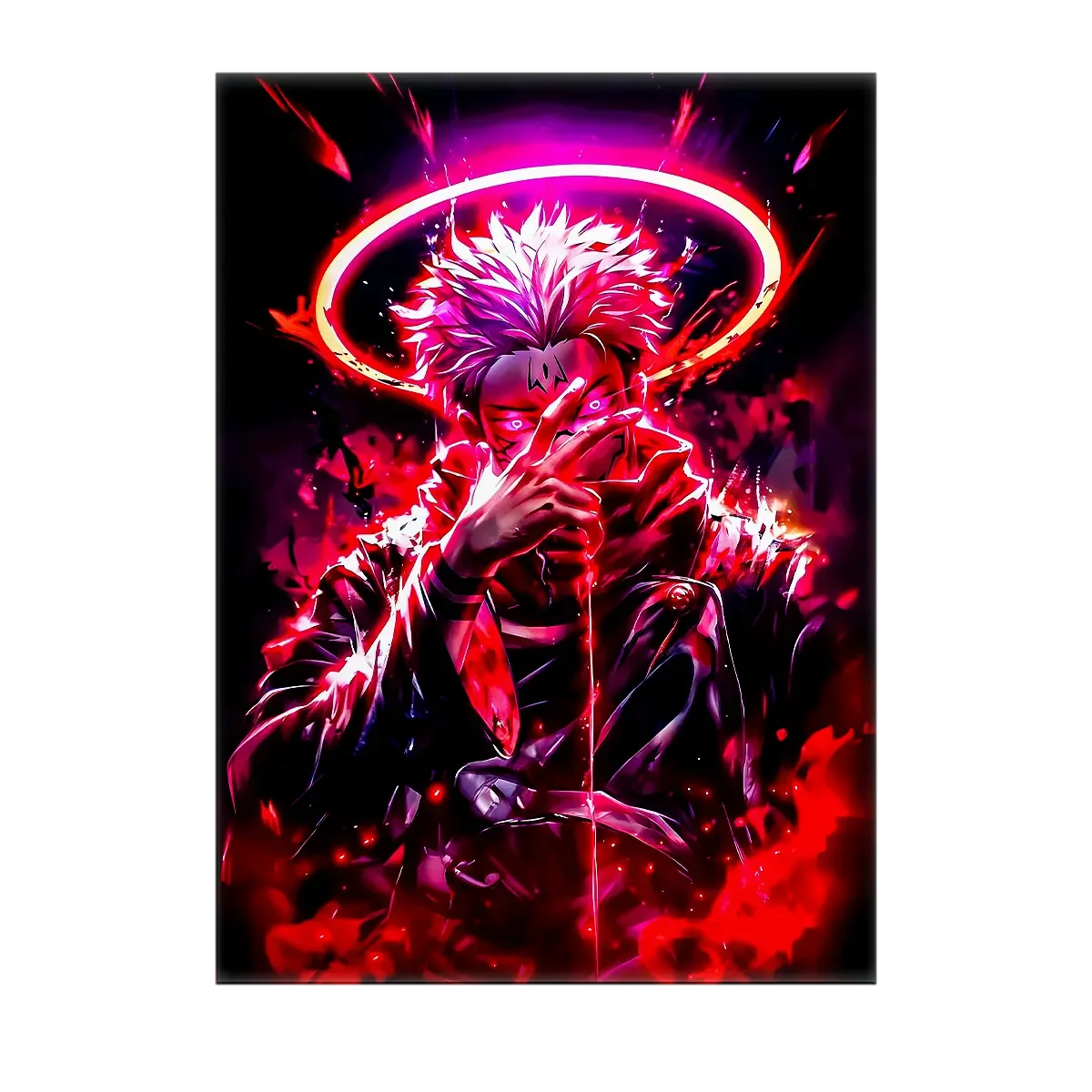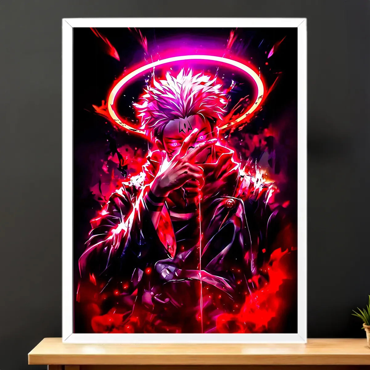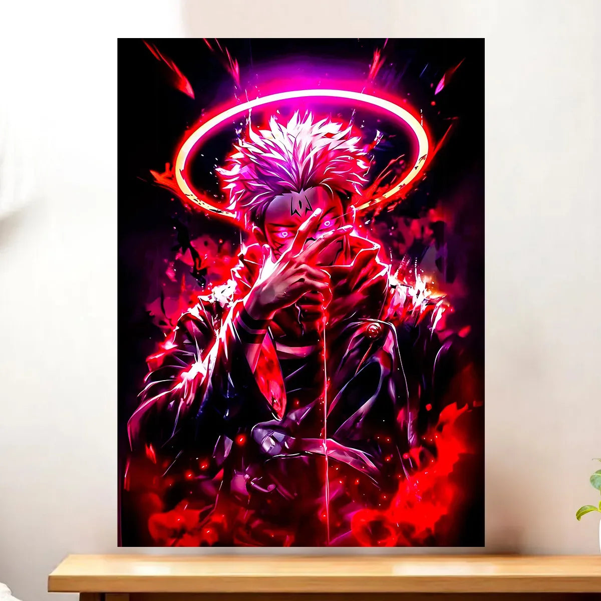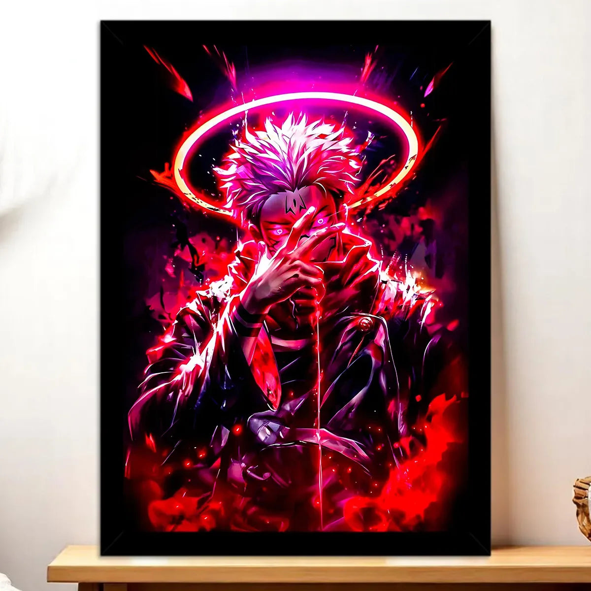 Un regard qui glace, une aura qui imprègne la pièce, et cette sensation d’être face à quelque chose de plus grand que soi. Avec le Tableau Sukuna, vous invitez l’ombre et la puissance dans votre déco, sans demi‑mesure. Réalisée à la main sur tablette graphique, l’illustration capte la noirceur et les détails qui font frissonner les fans. Avouez, on est d’accord, Sukuna mérite d’être vu et admiré.