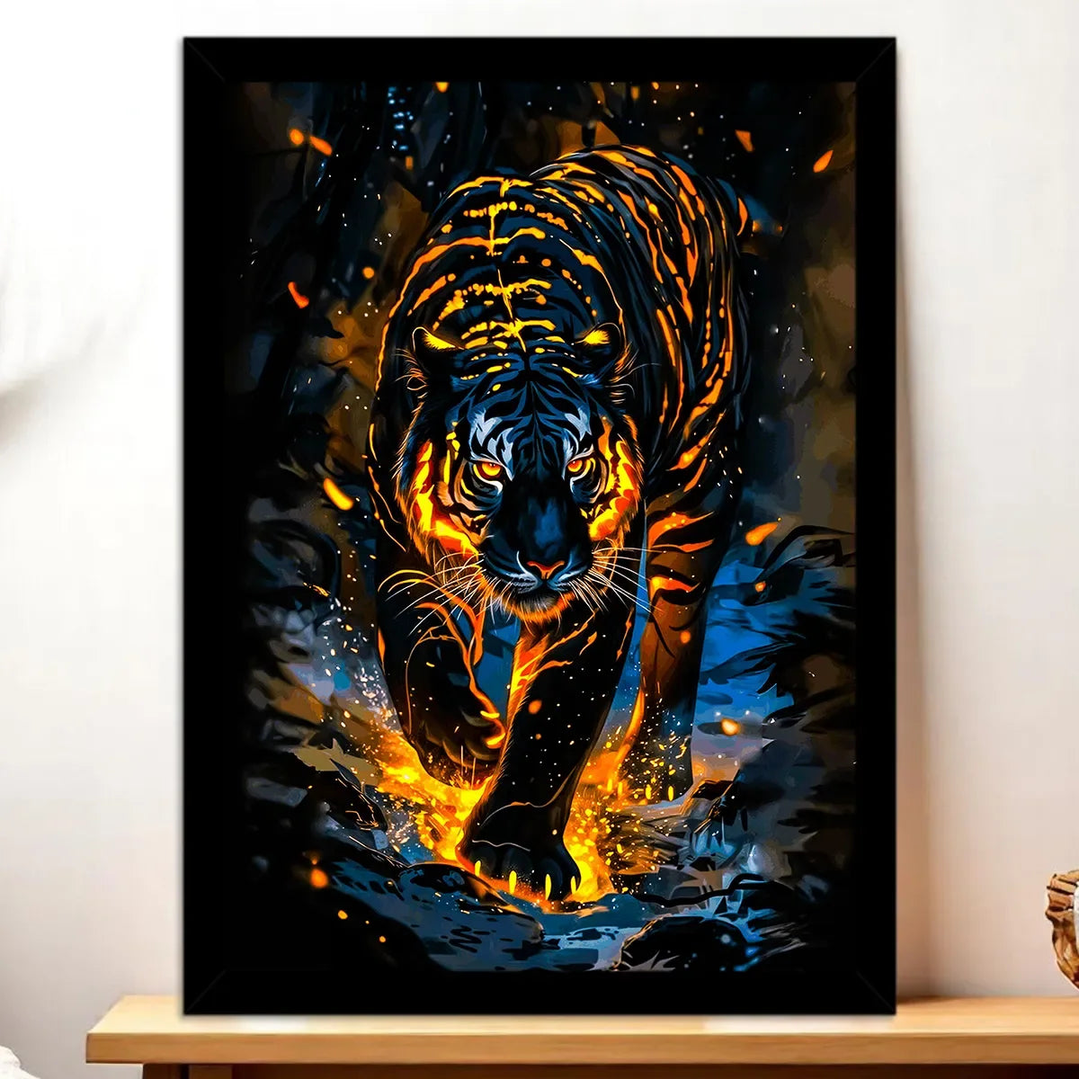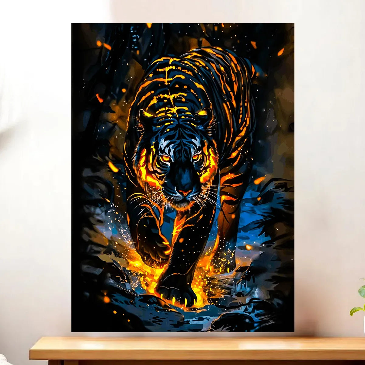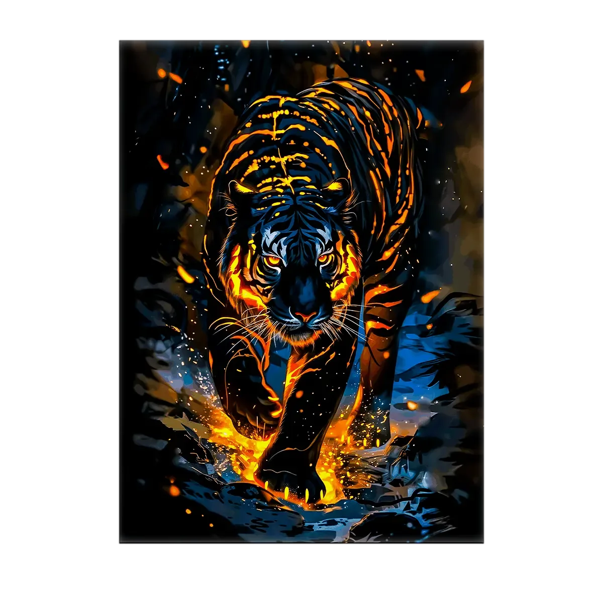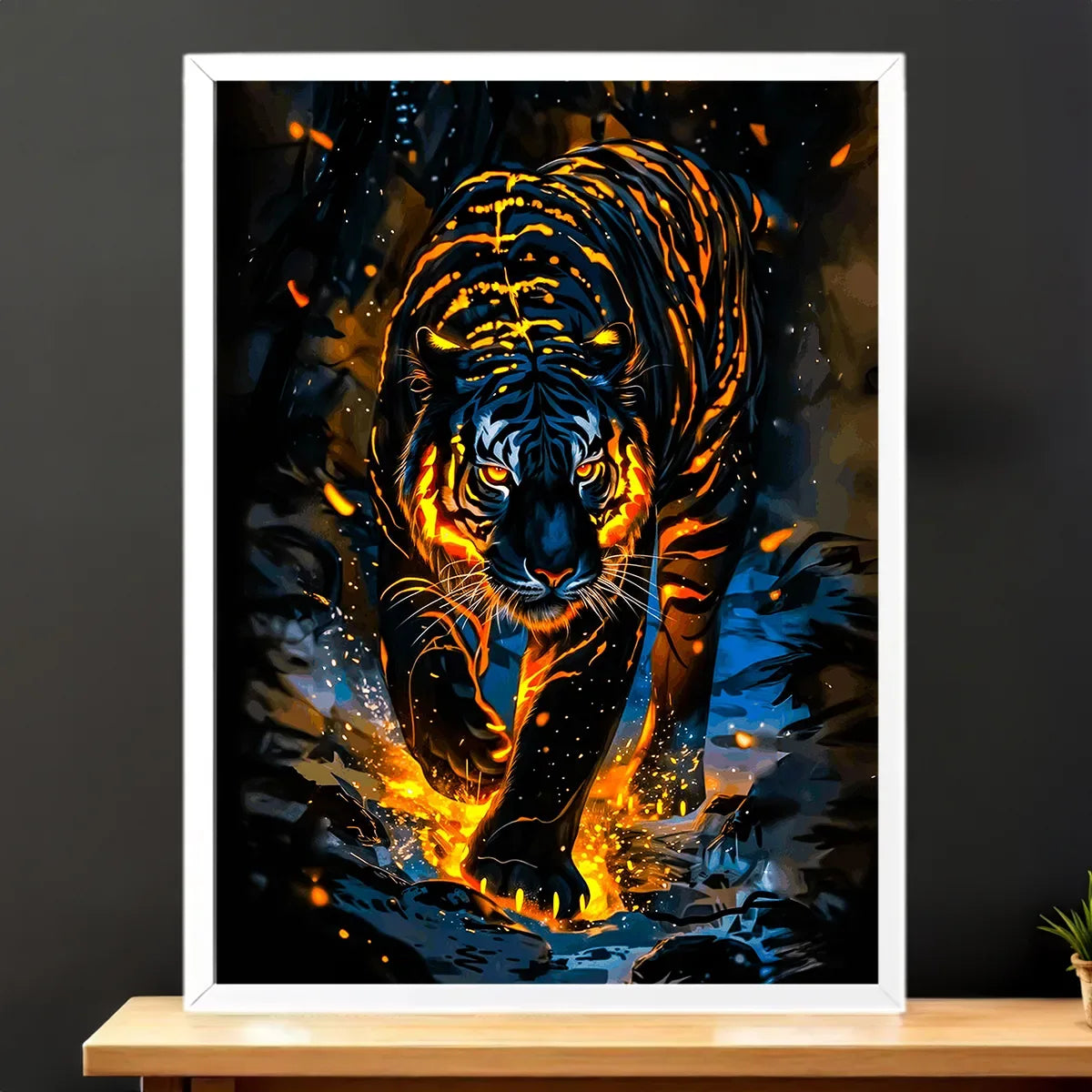 Le poster Tigre Lave joue la carte cinéma. Plus grand, plus percutant, il transforme une pièce en scène. Que vous le choisissiez en style peinture ou en portrait magnétique, le poster amplifie l’énergie du tigre et impose une ambiance.