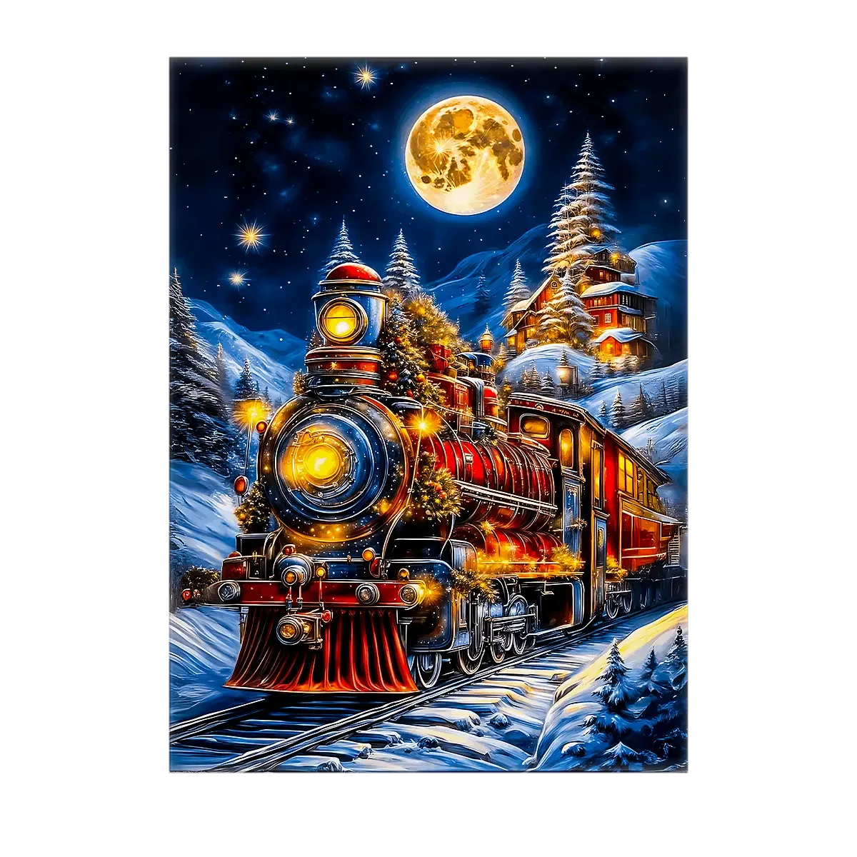 L’affiche reprend la même illustration ferroviaire imprimée en HD sur papier photo 200g. Disponible en 10×15, 13×18, 21×29 et 30×40 cm, elle offre une version plus accessible et modulable de cette œuvre. Encres anti-UV pour que la lumière ne ternisse pas la poésie du papier, et des formats pensés pour composer une galerie murale.