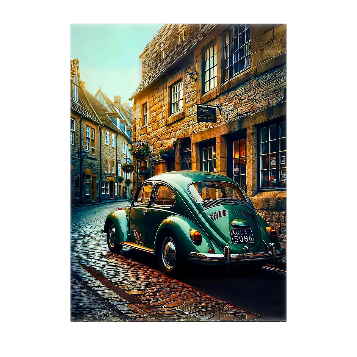 L’affiche Voiture Ancienne reprend chaque nuance et chaque reflet, imprimée en HD sur papier photo 200g avec encres anti-UV. Proposée en 10×15, 13×18, 21×29 et 30×40 cm, c’est la version accessible et modulable qui habille un mur sans en faire trop.